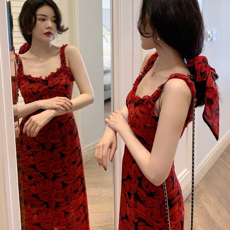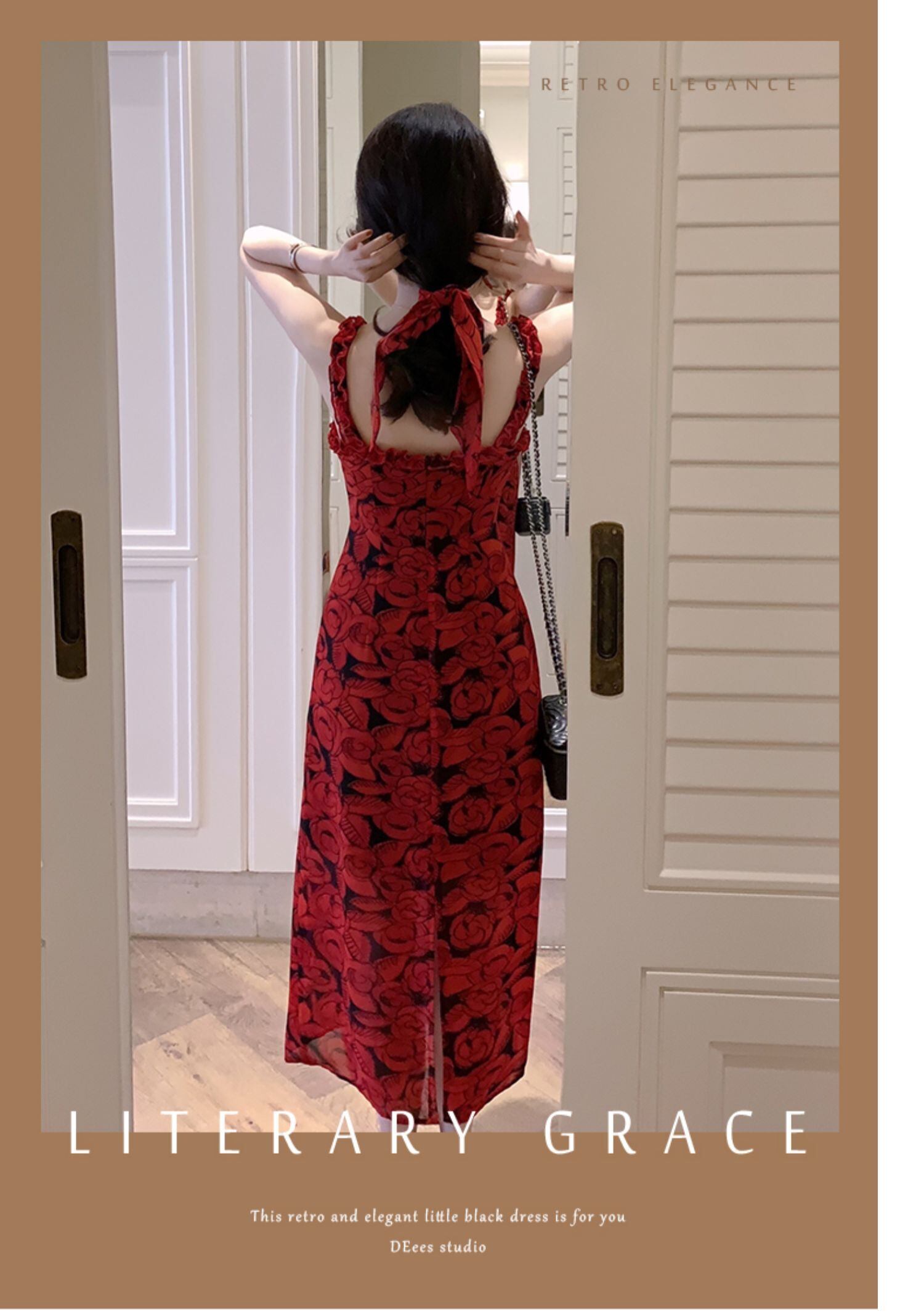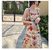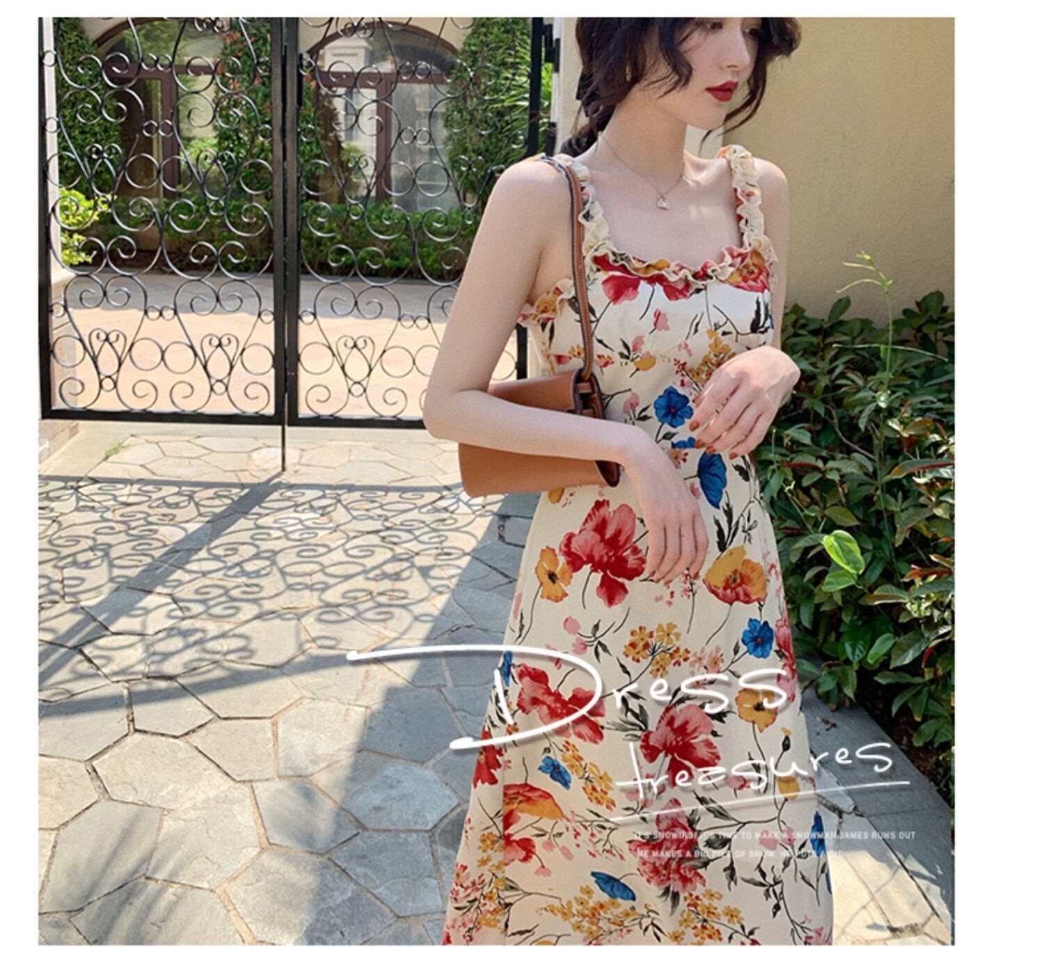 フランスのレトロなスリングスカートのデザインセンスのニッチな外着、ウエストは細かった、レディースフローラルスリングドレス女性 花柄 yingd39844785181