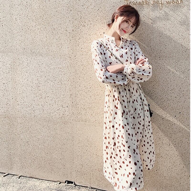 2020年春の新作フレンチレトロ優しいスタイル気質Vネックウエストスリミングシフォンフローラルドレス女性 スプリング 春物 花柄 yingd21070623426