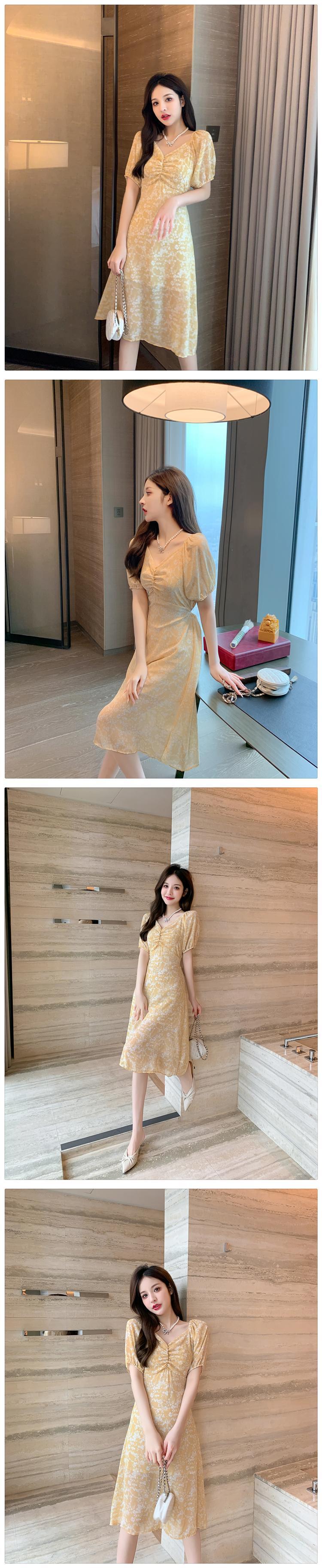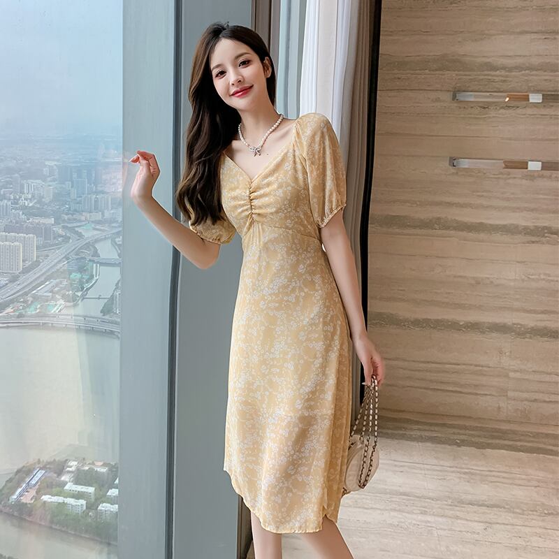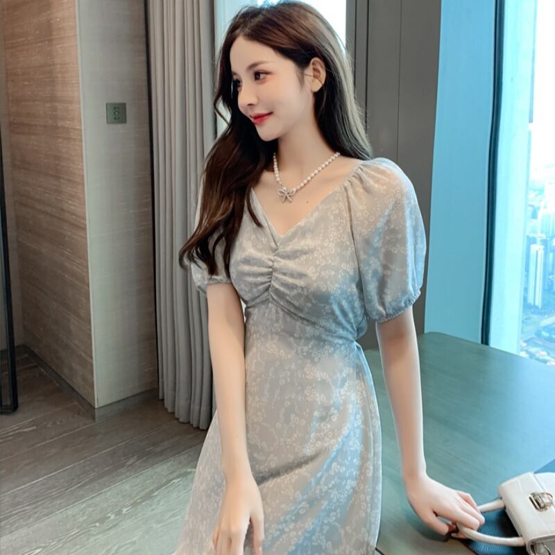 2021年夏新しいフランスのレトロなキキョウの腰と細い気質の穏やかな風の花柄のドレスの女性のティーブレイクドレス サマー 夏物 yingd79197553389