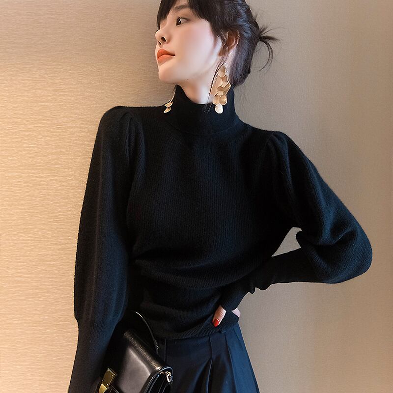 ハーフタートルネックセーター女性ルーズ秋冬2021新しいスタイルフレンチレトロランタンスリーブプルオーバーボトミングセーター女性 ウィンター 冬物 yingd57406780547
