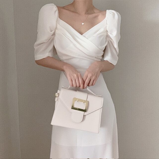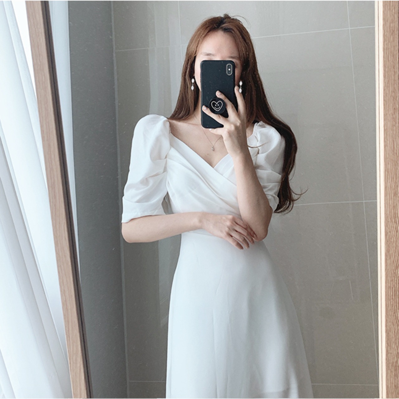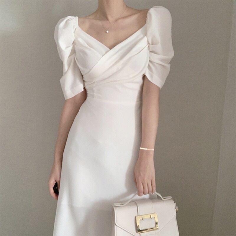 フレンチニッチロングスカート足首おとぎ話気質ウエストスリミングパフスリーブ優しい風ドレス女性夏 サマー 夏物 yingd31583446782