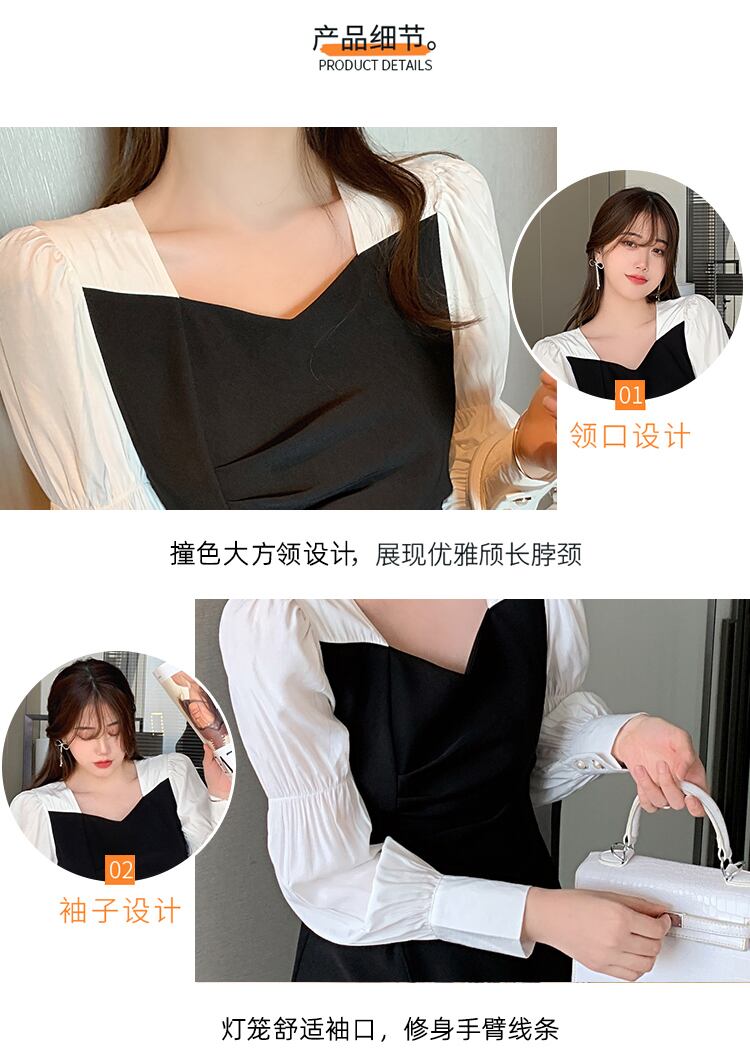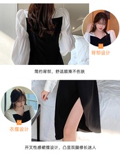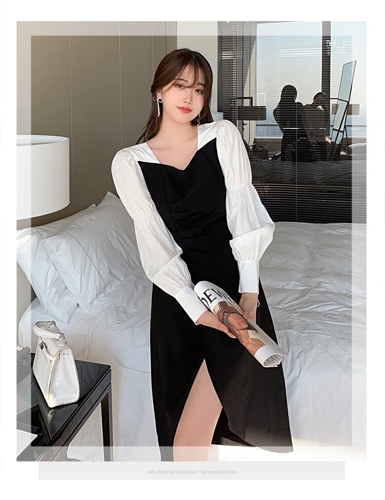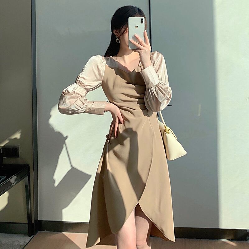 2021年秋新作フレンチレトロシックデザインスカートウエストスリミングパフスリーブスプリットドレス オータム 秋物 yingd11666415909