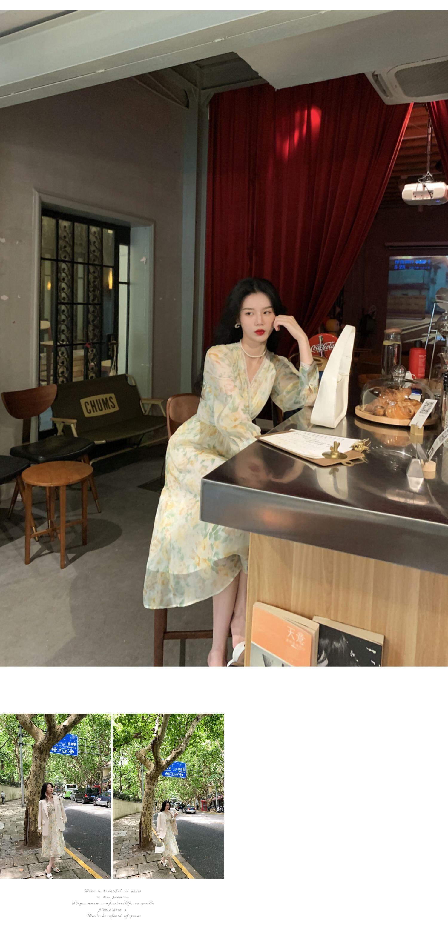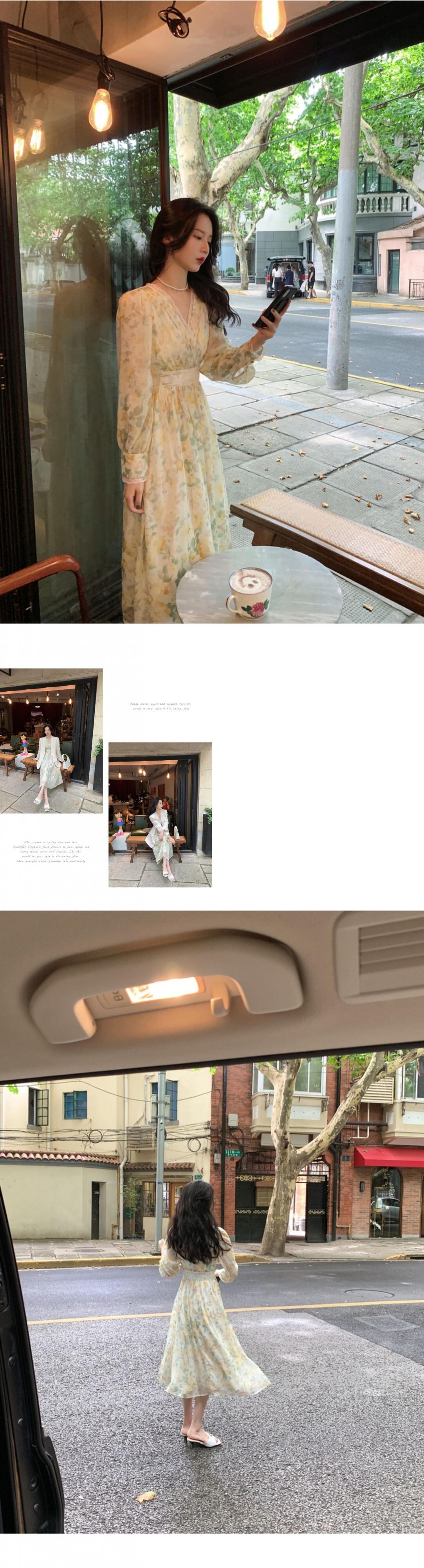 フランスのレトロなニッチな膝上フローラルドレス、ウエストと薄さ、高級感、軽やかなラグジュアリーフローラルドレス、女性の秋 オータム 秋物 花柄 yingd46264198179