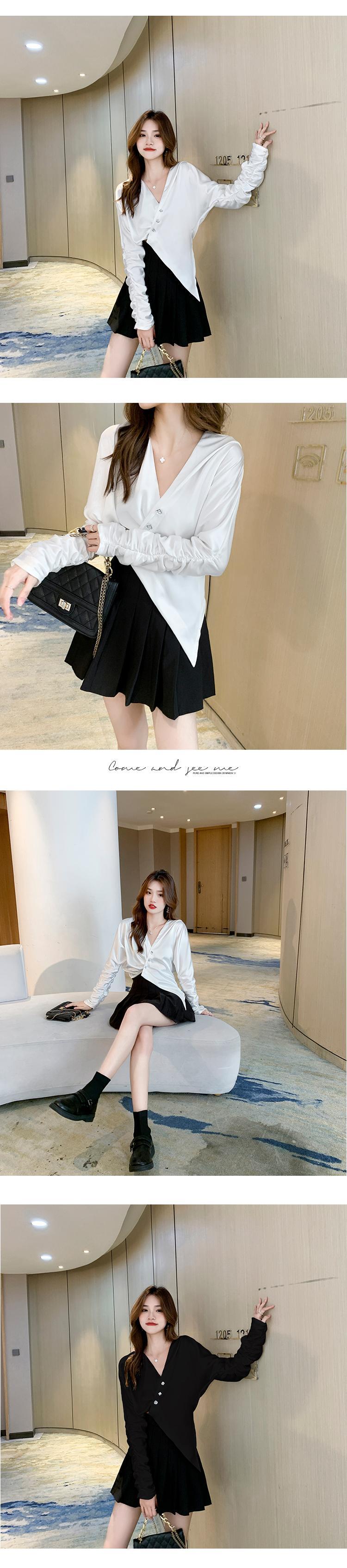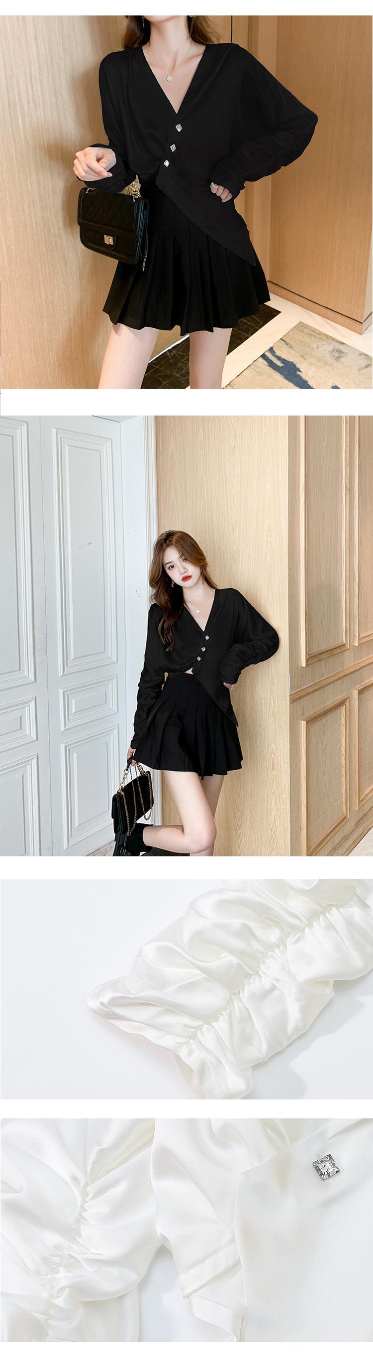 2021年初秋の新しい女性のフレンチスタイルのニッチなデザインセンス不規則な長袖シャツセクシーなへそトップシャツ ロング オータム 秋物 yingd41074229530