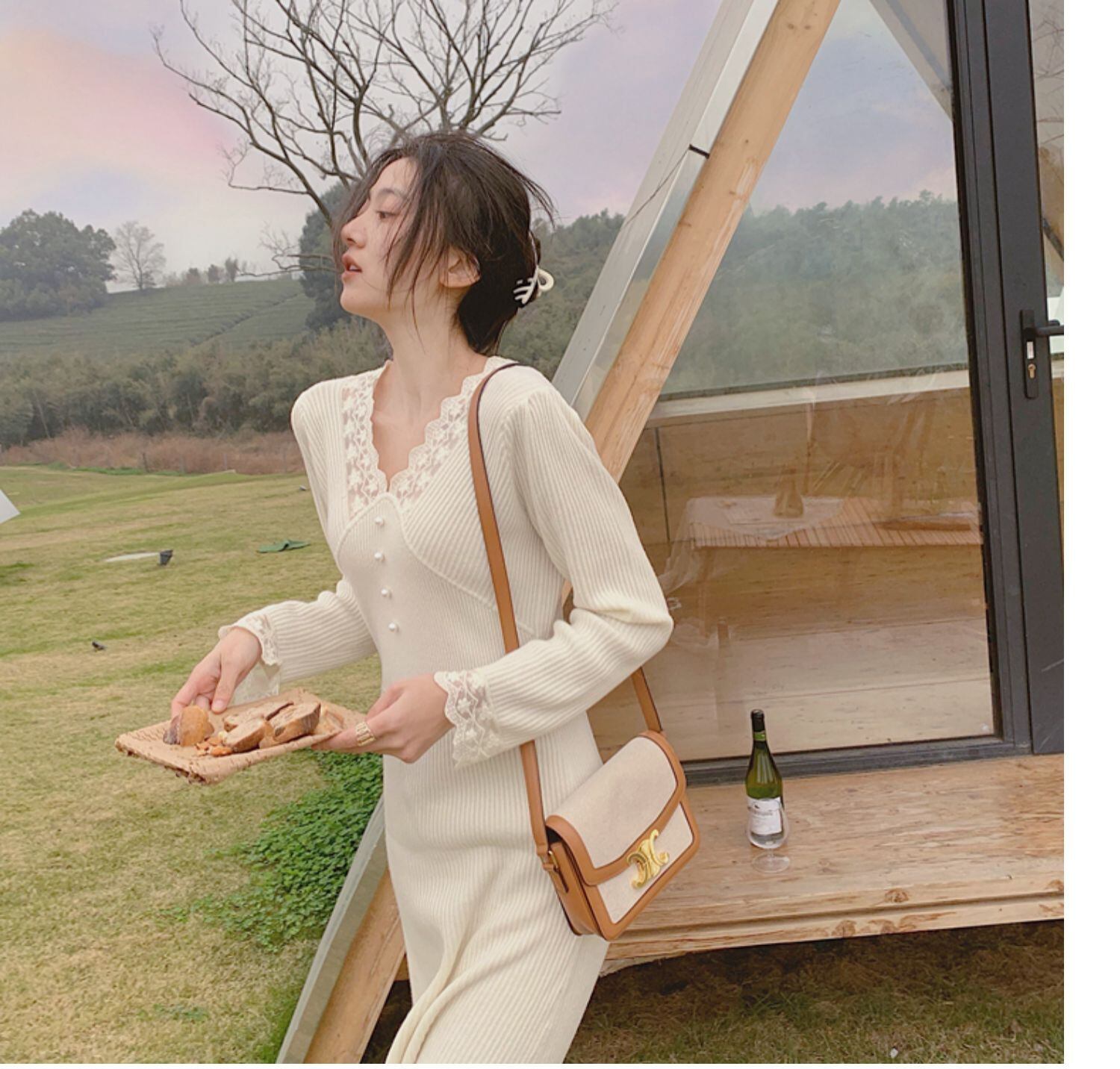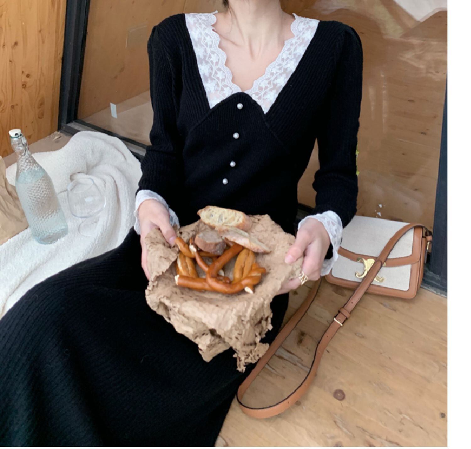 フランスのレトロな気質の女神ファン高級感の高い光高級女性自家栽培レースニットドレス女性秋冬 オータム 秋物 ウィンター 冬物 yingd25358636601