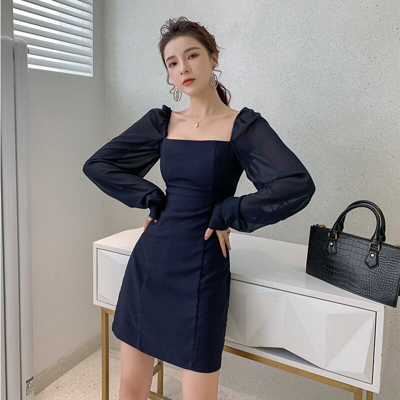 フランスのレトロなセクシーなバッグヒップスカート2021年秋新しいスタイルYujieライト成熟したスタイルライト高級スクエアカラー長袖ドレス ロング オータム 秋物 スクウェア yingd46218648353