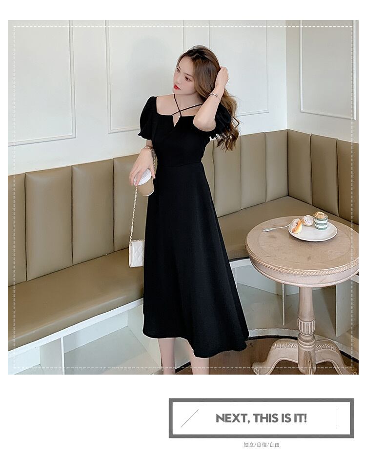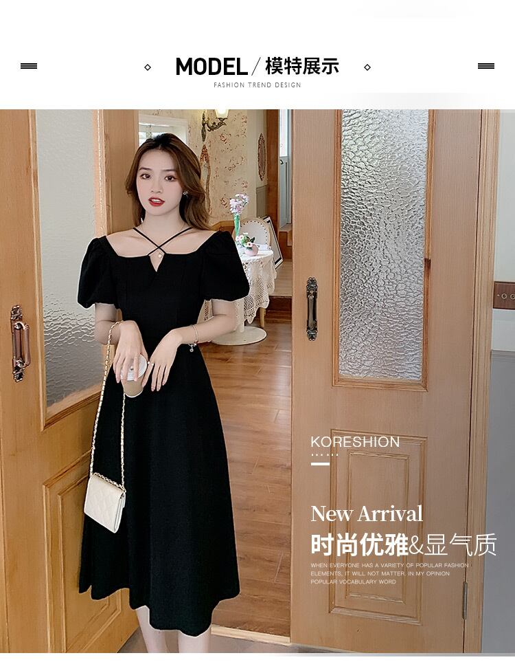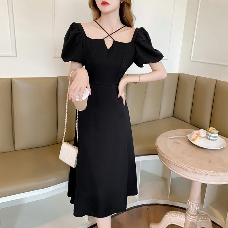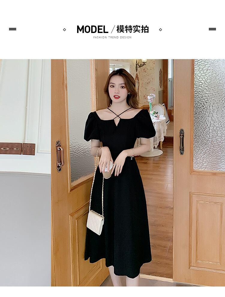 フレンチレトロヘップバーンスタイルロングスカート夏気質女神ファンデザインセンスニッチバブルスリーブホルターネックドレス女性夏 サマー 夏物 yingd98553895564