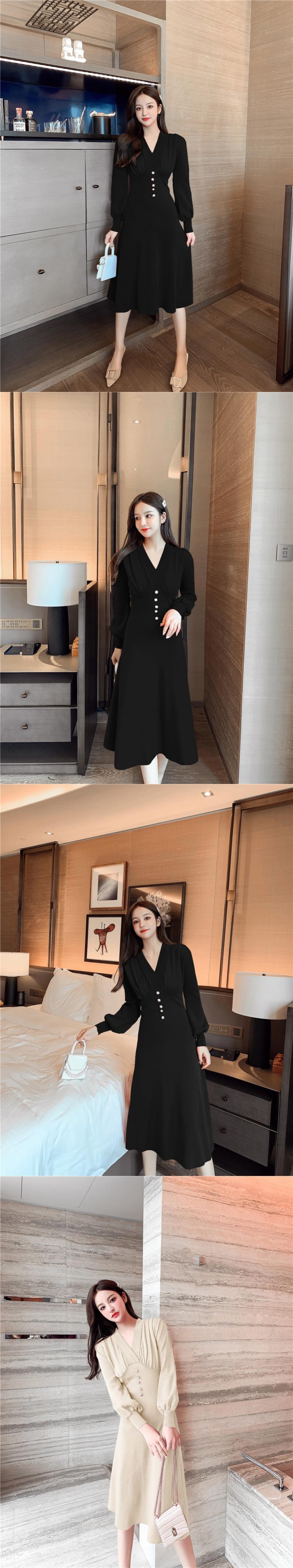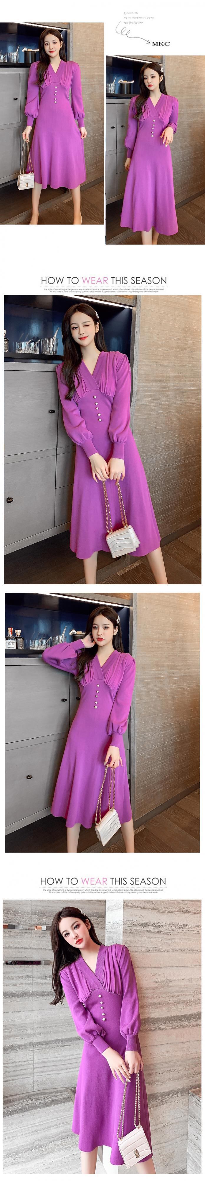 膝と腰の上の秋と冬の長いセータードレスは薄く、女性のVネックの優しい風のニットドレス女性の冬のスカート ロング オータム 秋物 ウィンター 冬物 yingd31077944150