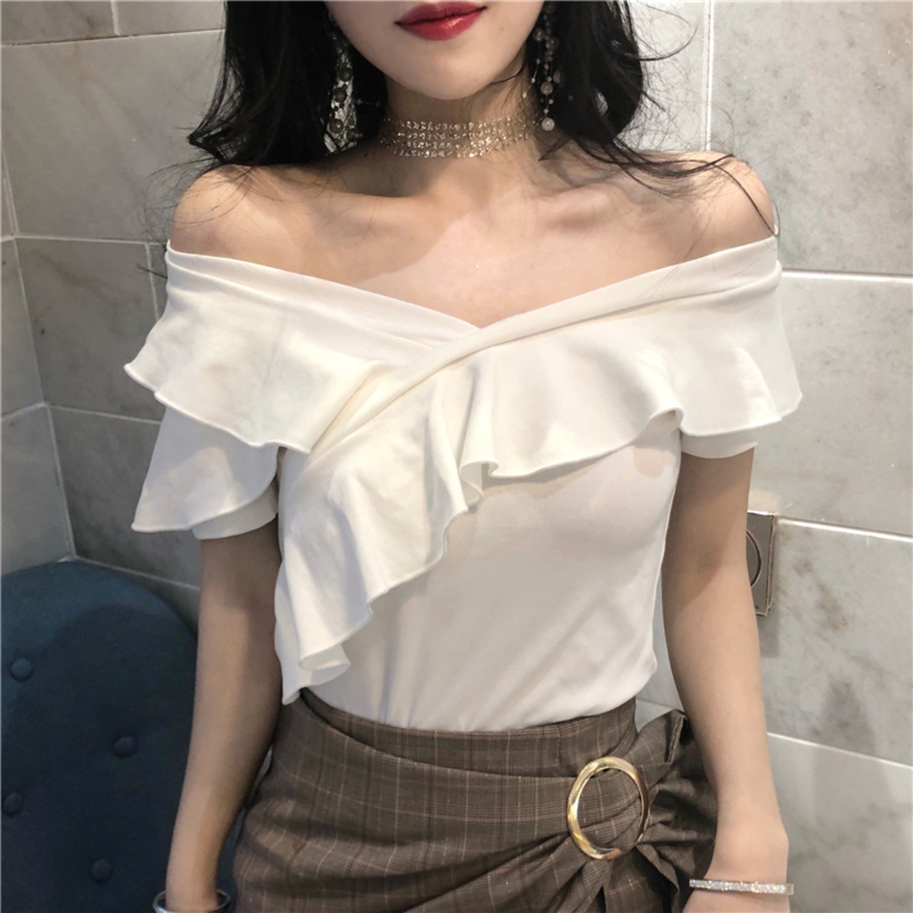 2019夏新作キクラゲサイドワードカラー半袖Tシャツトップ女性ルーズシック丁寧なマシンボトミングシャツ サマー 夏物 yingd77489877488