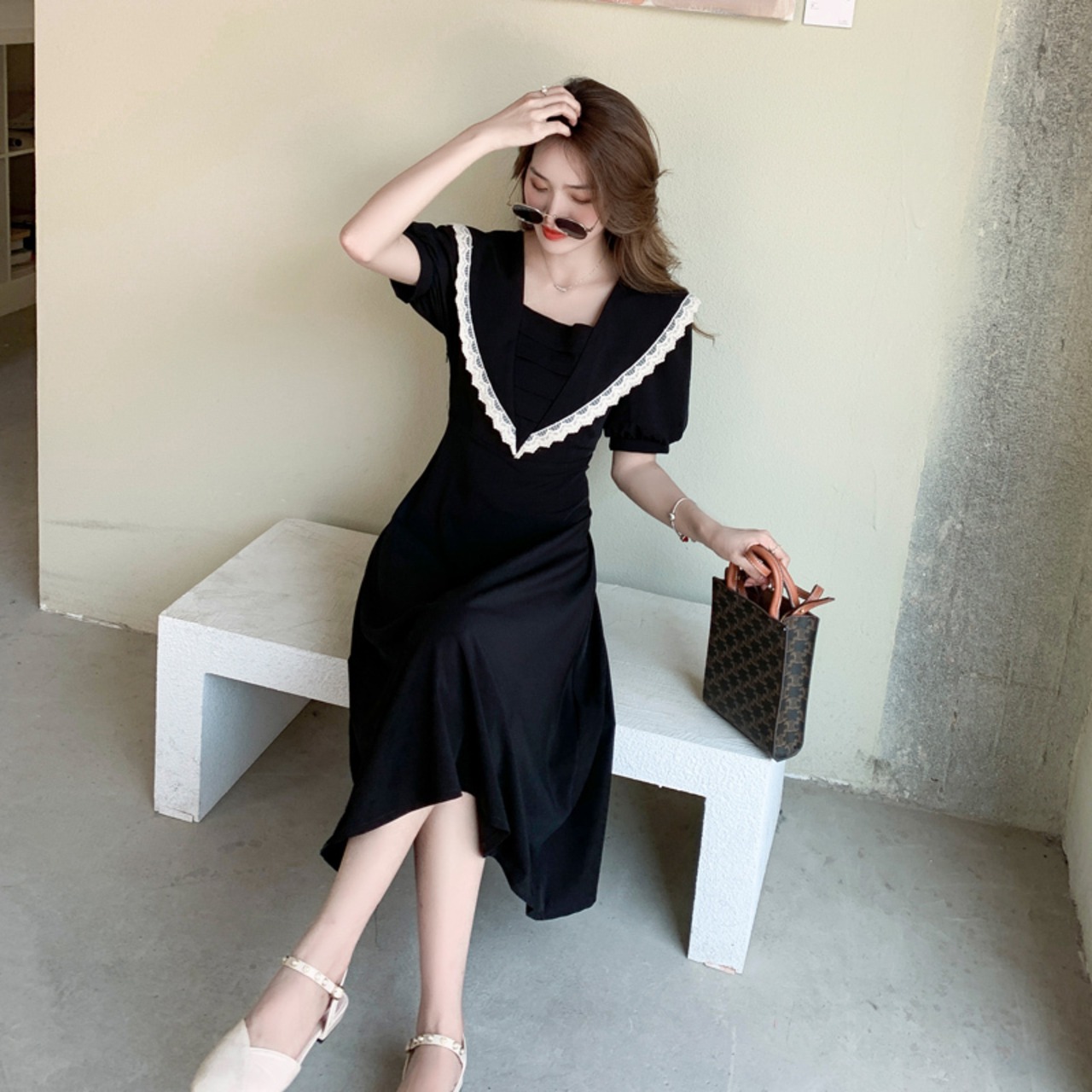 フランスのレトロなヘップバーンスタイルのリトルブラックドレスのウエストは細く、気質は軽くて成熟したスタイルのデザインセンスレースエッジドレス女性の夏 サマー 夏物 yingd3023918077