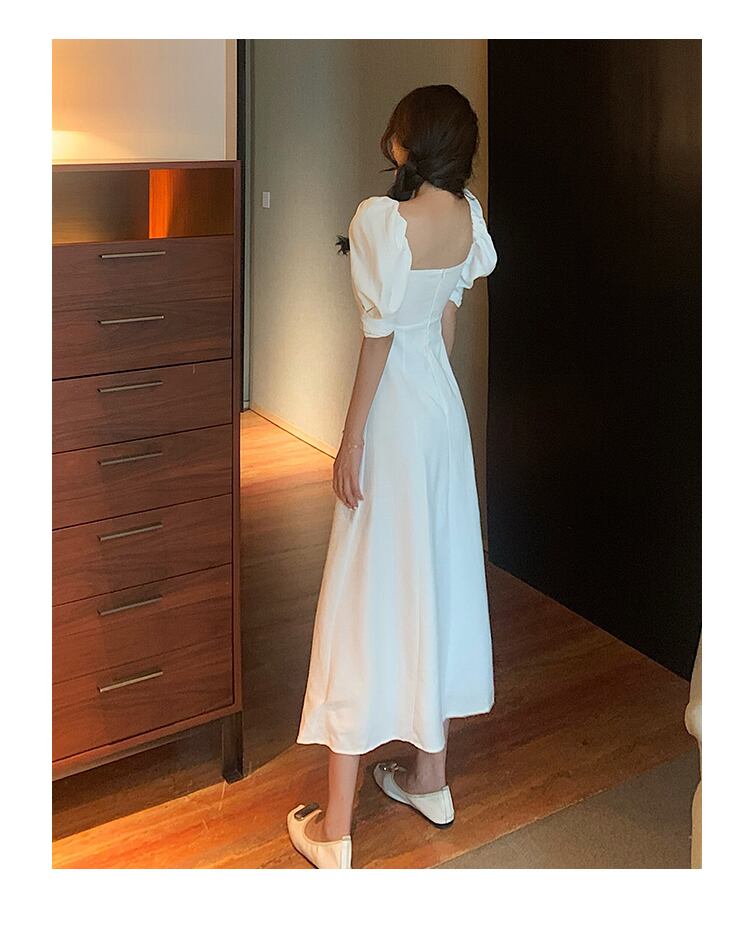 フランスのニッチ初恋妖精のドレス気質フェミニンなパフスリーブ白いドレス女性の夏のウエスト痩身ロングスカート ホワイト サマー 夏物 yingd70458657502