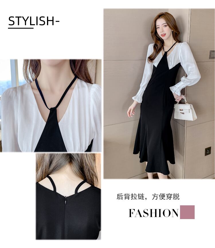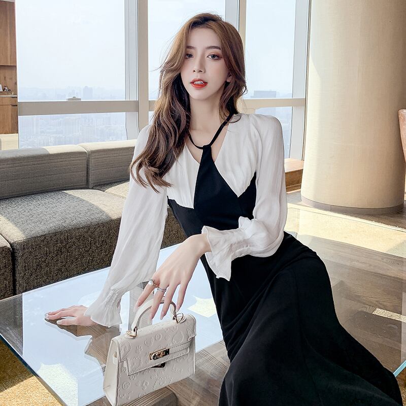 2021年秋新しいスタイルのシックなデザインのロングスカートヘップバーンスタイルの高品質の長袖スリムフィッシュテールドレスの女性 オータム 秋物 yingd44442722842