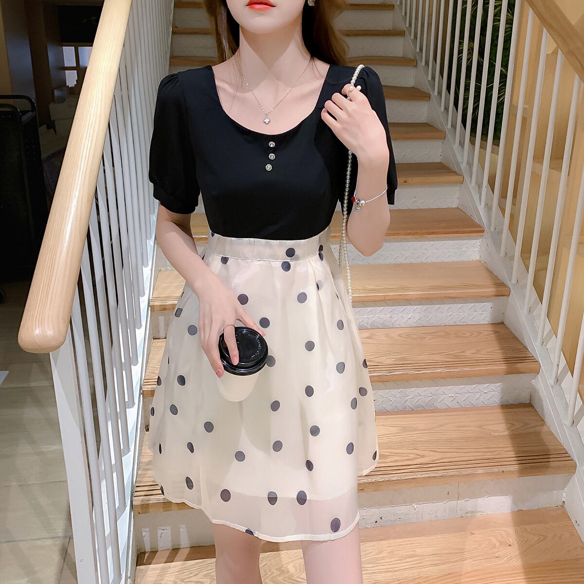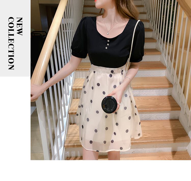 フランスのレトロな妖精スーパーフェアリーエスト甘い初恋小さなスカートウエストは細くて気質水玉ドレス女性の夏 大人ガーリー スウィート キュート カジュアル サマー 夏物 yingd38006181544