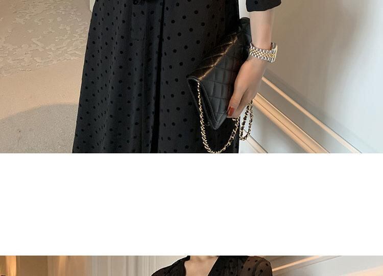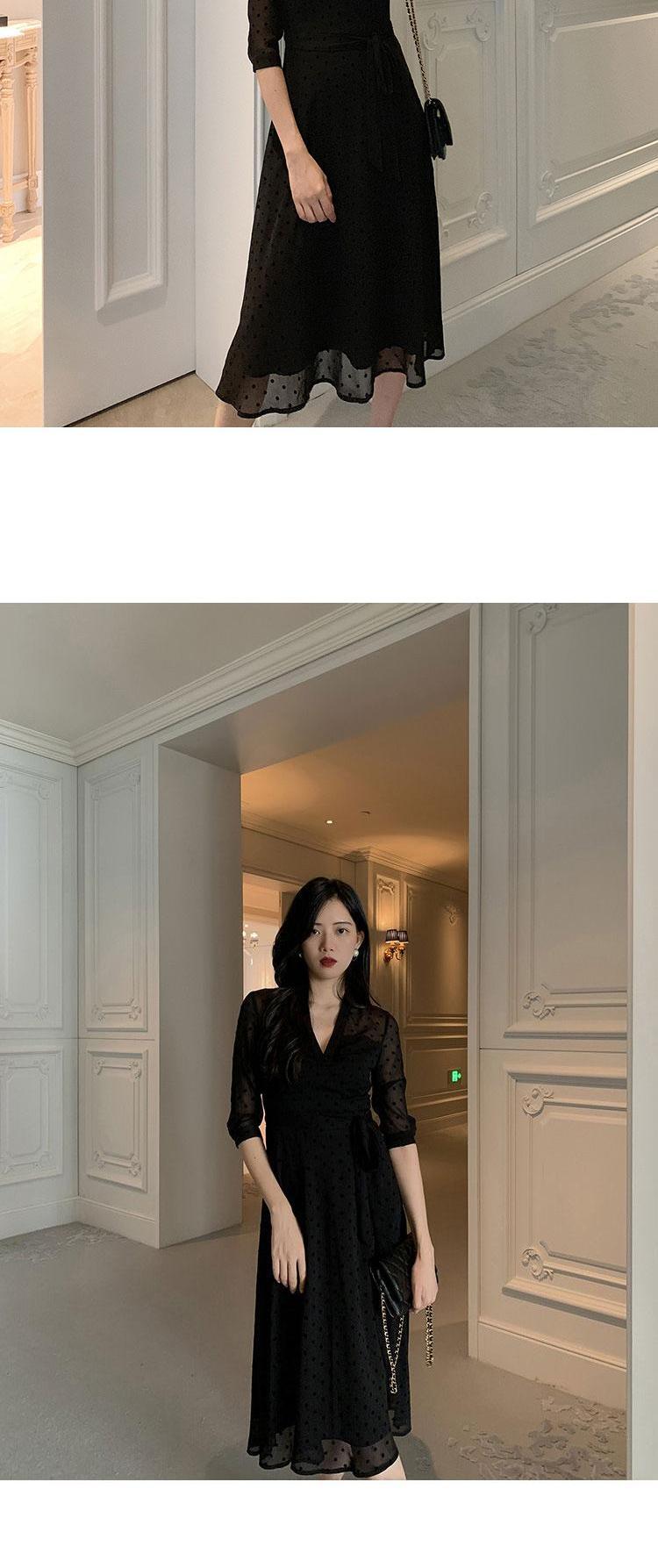 スカートの女性2020新しいフレンチレトロヘップバーンスタイルのドットドレス、ウエストと細い気質のVネックミドル丈スカート yingd20747348240