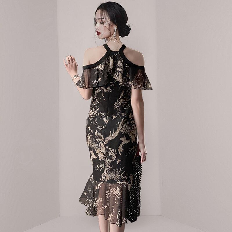 フランスのレトロなコールドスタイルの女性のウエストウエストのハイレベルな感覚は、薄い気質のセクシーなストラップレスのハンギングネックフローラルドレス夏でした サマー 夏物 花柄 yingd87696426441