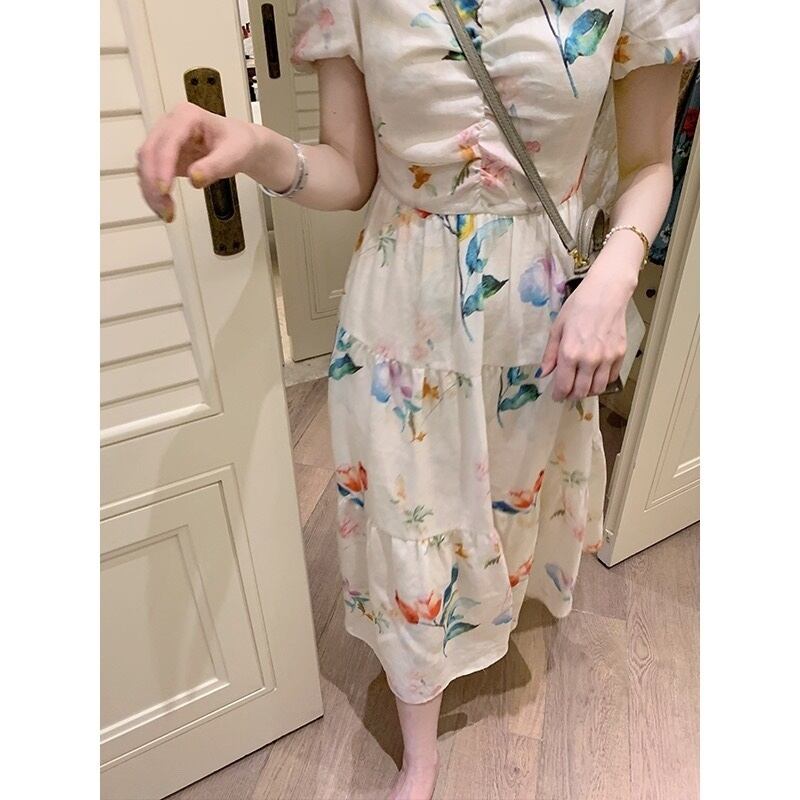 フランスの桔梗初恋ドレスレトロ優しい風ハイエンドウエスト感が薄い気質ヘップバーン風フローラルドレス夏 サマー 夏物 花柄 フラワーデザイン yingd70669605787