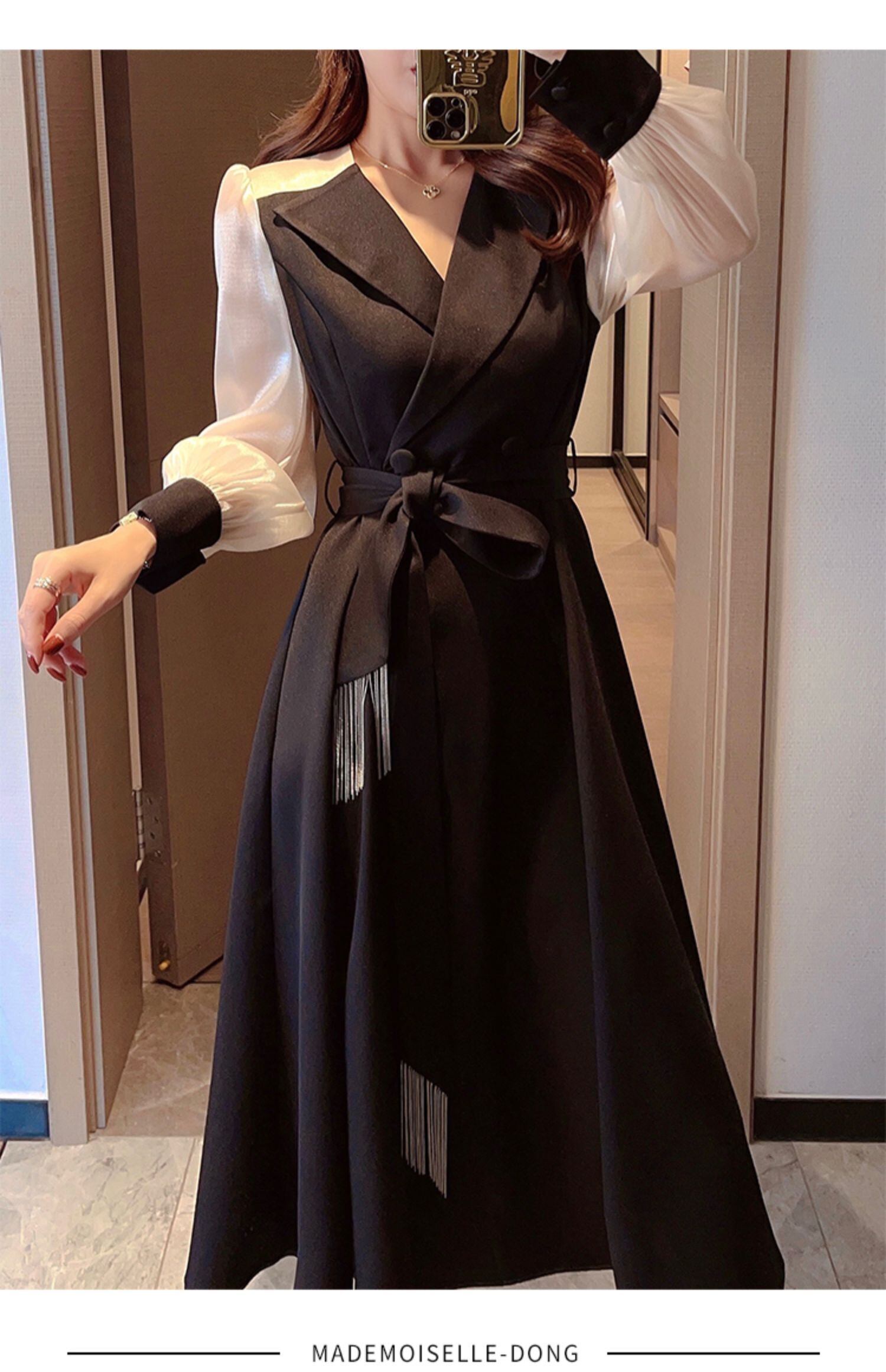 2021年秋新しいフレンチスタイルのニッチな膝上ロングスカート、ロイヤルシスターのハイエンドセンス、軽くおなじみのスタイルのレーススーツドレス オータム 秋物 yingd78463302463