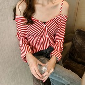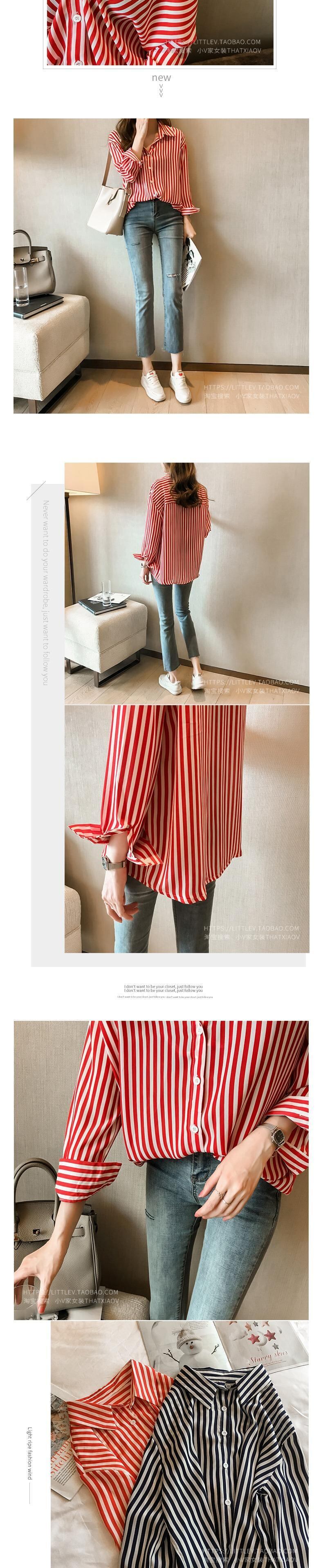 2020年秋新作レトロ香港風味シフォン長袖ストライプシャツレディースデザインセンスニッチトップスレディース ロング レッド オータム 秋物 yingd41518220429