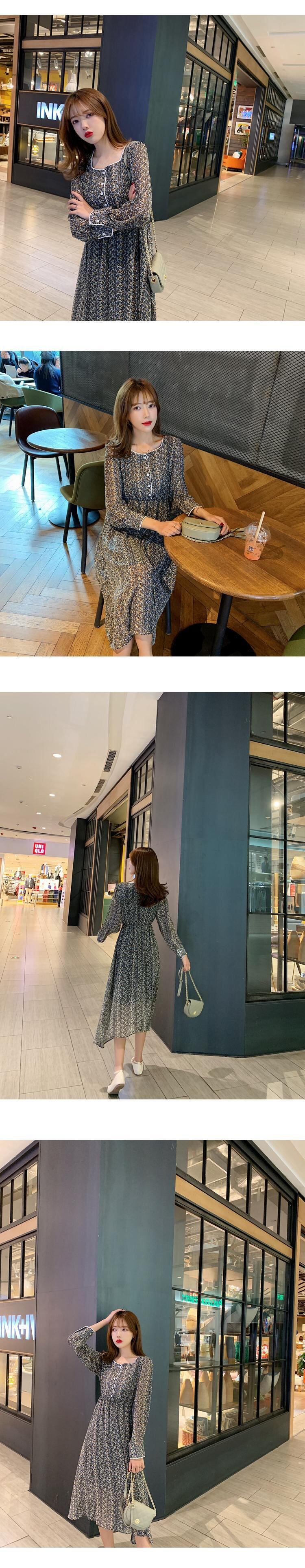 2020年春の新作フレンチレトロ気質スクエアネックフローラルシフォンドレス女性ウエストスリミングボトミングスカート スプリング 春物 花柄 スクウェア yingd85575866535