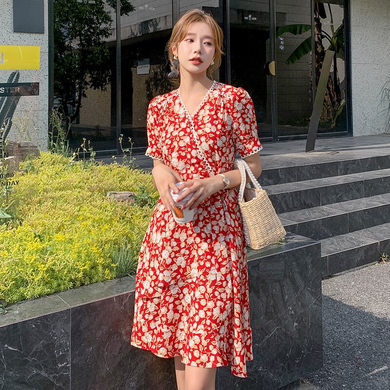 甘い初恋スカート、レトロな優しい風、ウエストが細く、気質の女神ファンフレンチティーブレイクフローラルドレス女性夏 大人ガーリー スウィート キュート カジュアル サマー 夏物 花柄 yingd63618995630