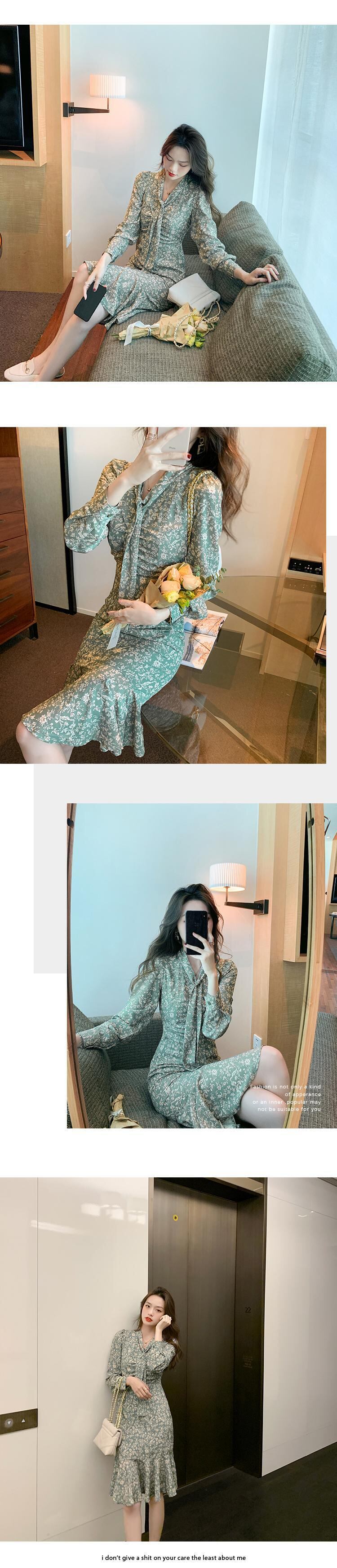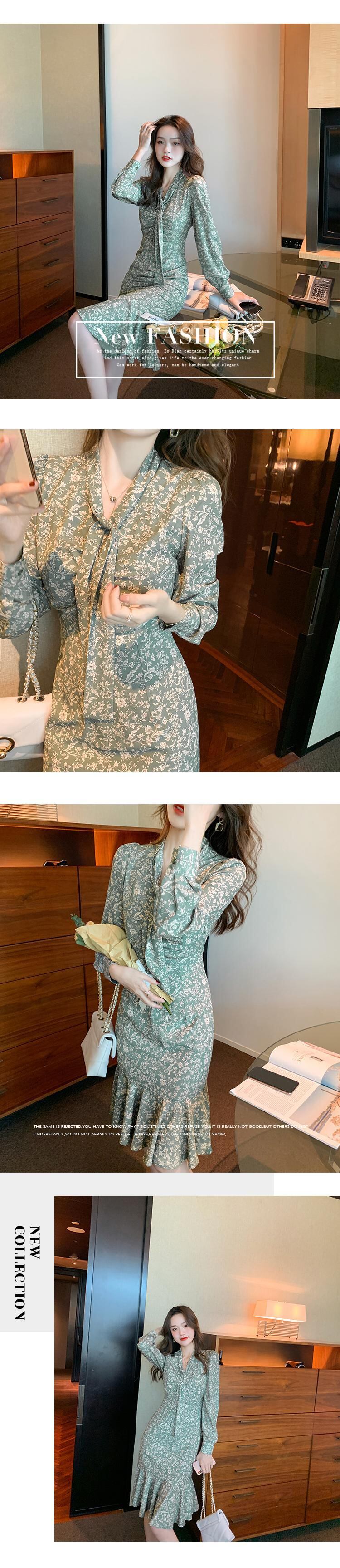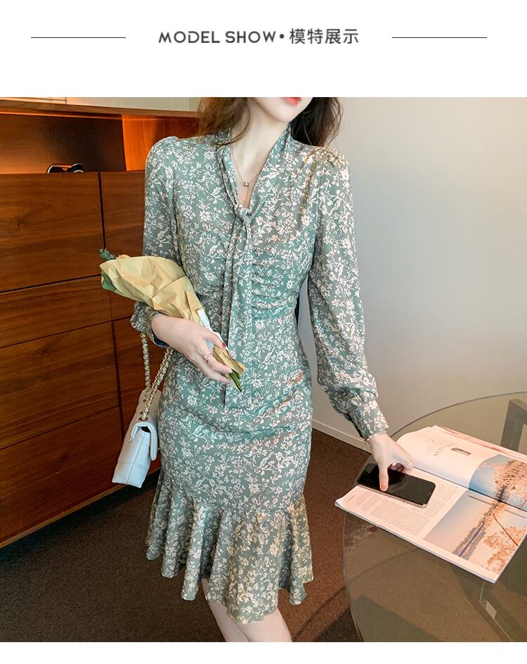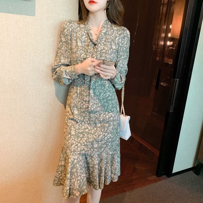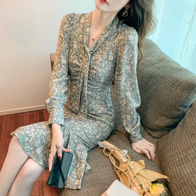 フランスの優しいティーブレイクベルフラワースカートウエストスリミングシフォンフローラルバッグヒップドレス2021年秋新作女性 オータム 秋物 花柄 フラワーデザイン yingd83007078203