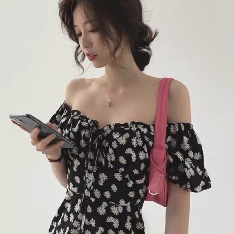 フランスのワンショルダーシフォンフローラルドレス女性のサマードレス2021新しい穏やかな風は塩になることができます甘いフローラルショートスカートにすることができます 大人ガーリー スウィート キュート カジュアル 夏物 花柄 yingd75522840814