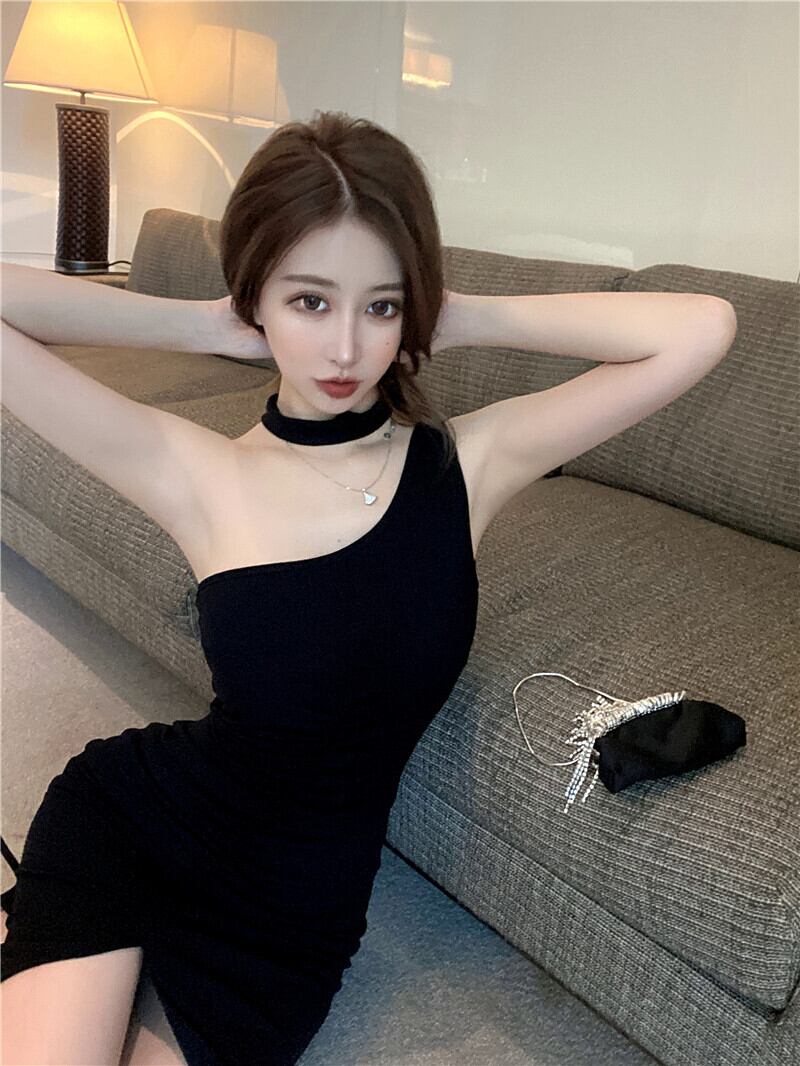 フランスのレトロな気質フェミニンなセクシーなヘップバーンスタイルのリトルブラックドレス高精細ライトラグジュアリースプリットホルタードレス女性の夏 サマー 夏物 yingd43974903145