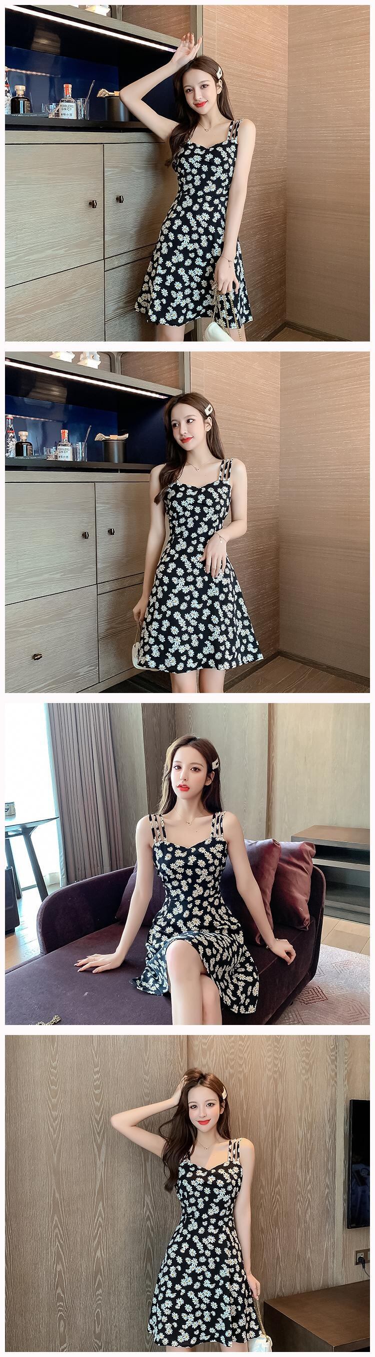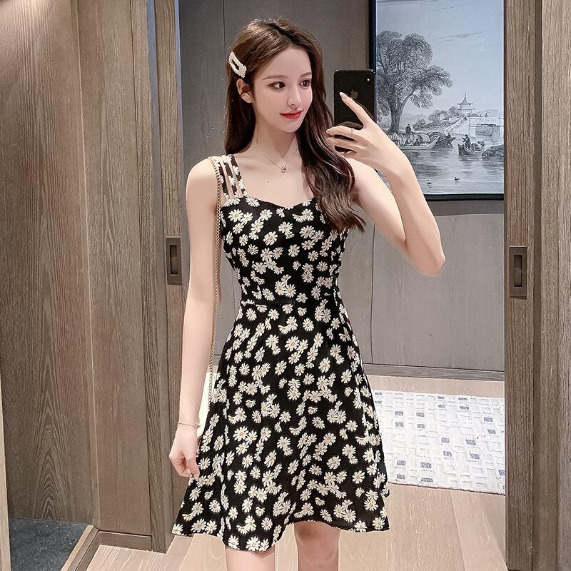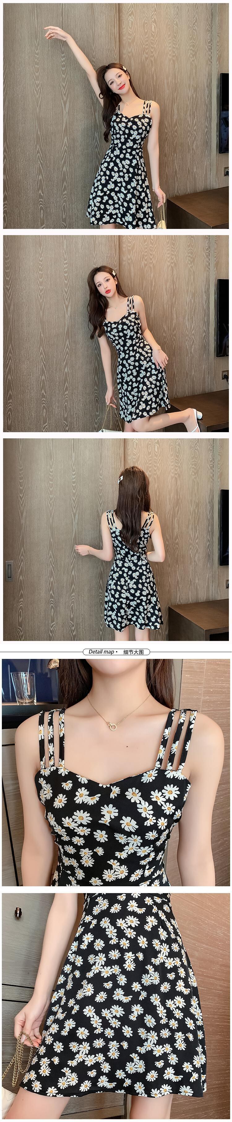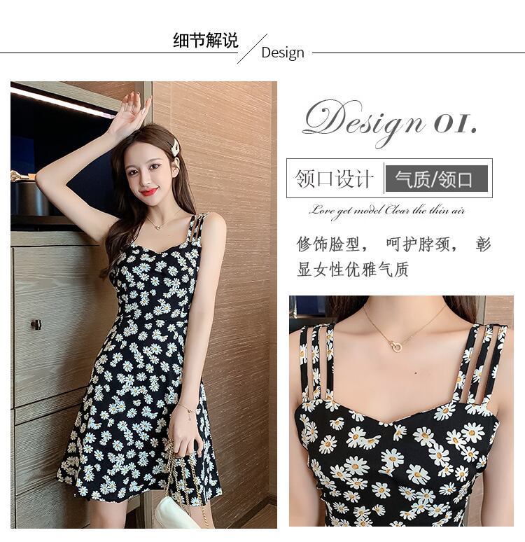 2021年夏の新しいフランスのレトロなヘップバーンスタイルは塩にすることができます甘い小さなデイジーフローラルショートスリングドレス女性にすることができます 大人ガーリー スウィート キュート カジュアル サマー 夏物 花柄 yingd71395844471