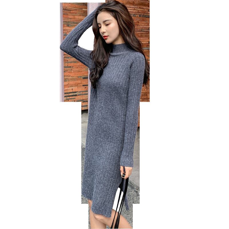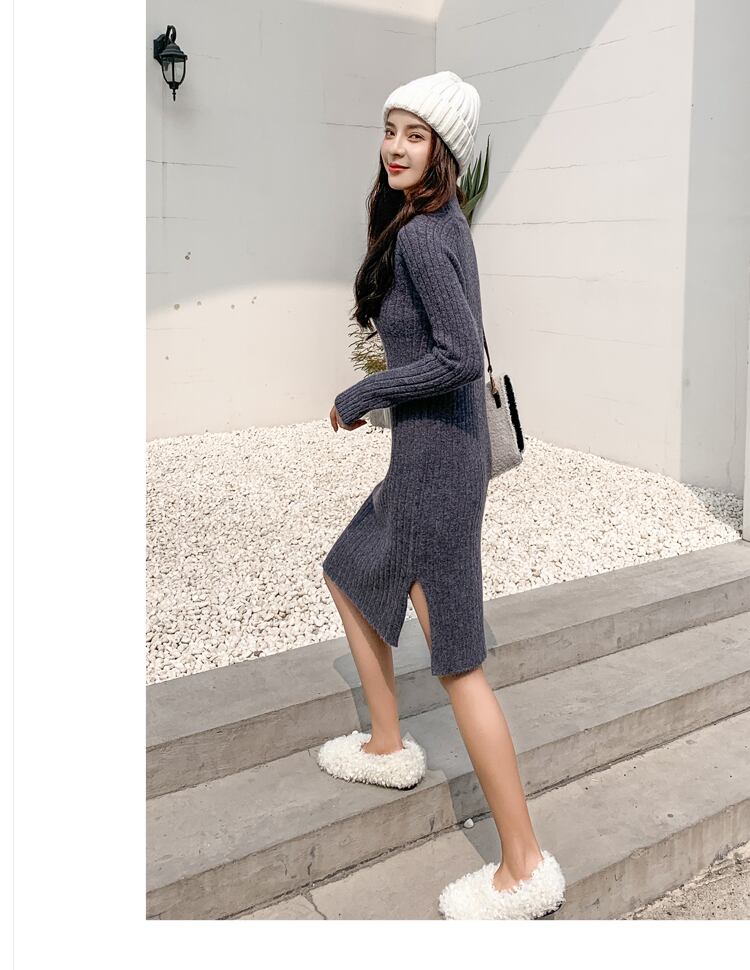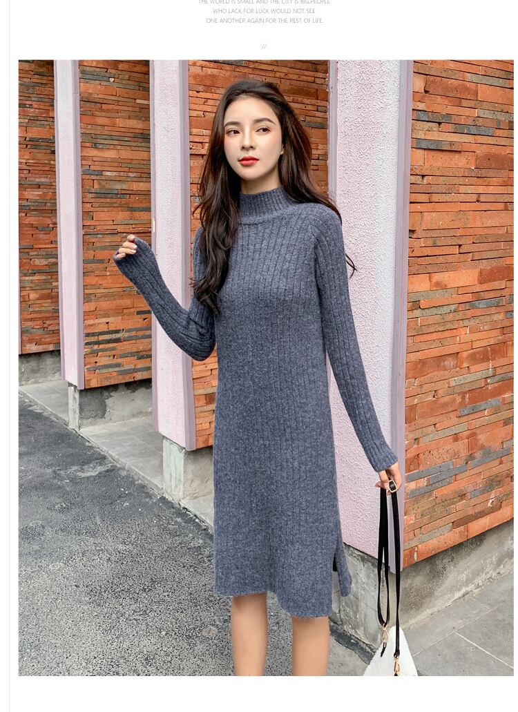 コート付きのロングスカートは、ルーズで厚みのあるベーススプリットニットセータードレスの女性ミドル丈秋冬 オータム 秋物 ウィンター 冬物 yingd84464941366