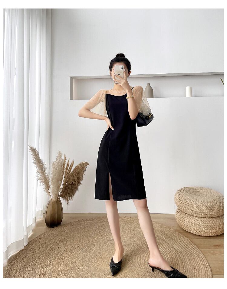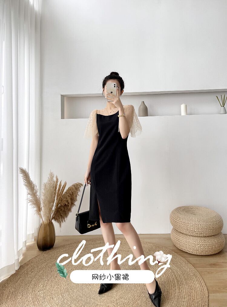 フランスのレトロなヘップバーンスタイルの小さな黒いドレスのウエストは細く、メッシュステッチドレスの高品質な感覚は女性の夏の薄さでした ブラック サマー 夏物 yingd87551424308