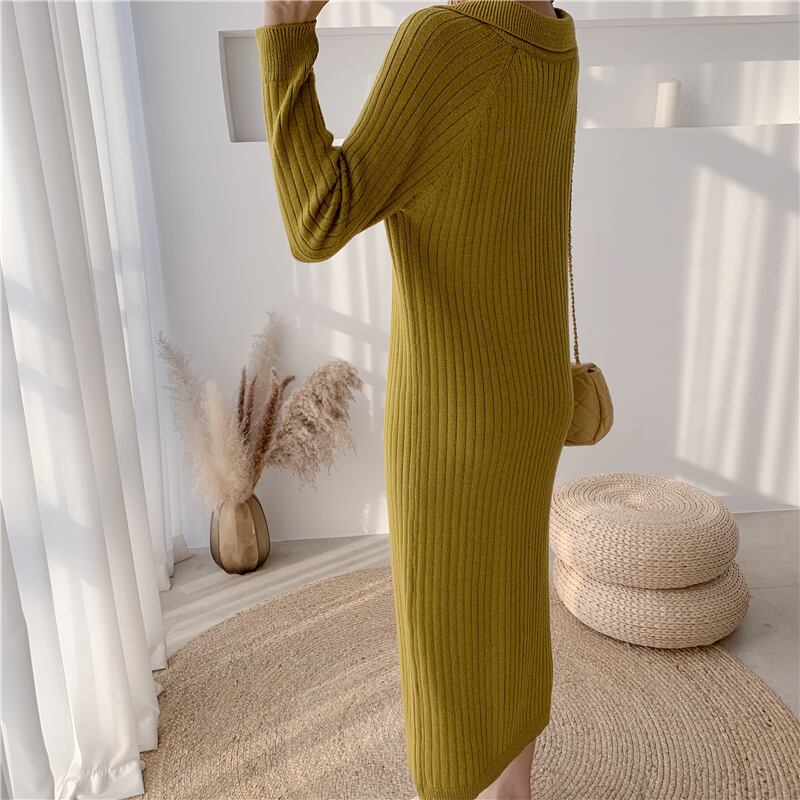 コート付きスカートは冬のロングオーバーザニーセータードレスルーズストレートニットワンピース秋冬女性 オータム 秋物 ウィンター 冬物 yingd80033608482