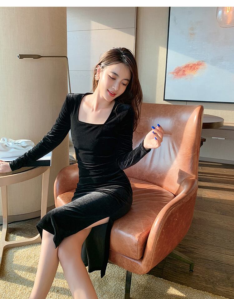 2021年春の新しい冷風ハイエンドフレンチレトロセクシーホルタースクエアカラーベルベットドレス女性 スプリング 春物 スクウェア yingd10205437504
