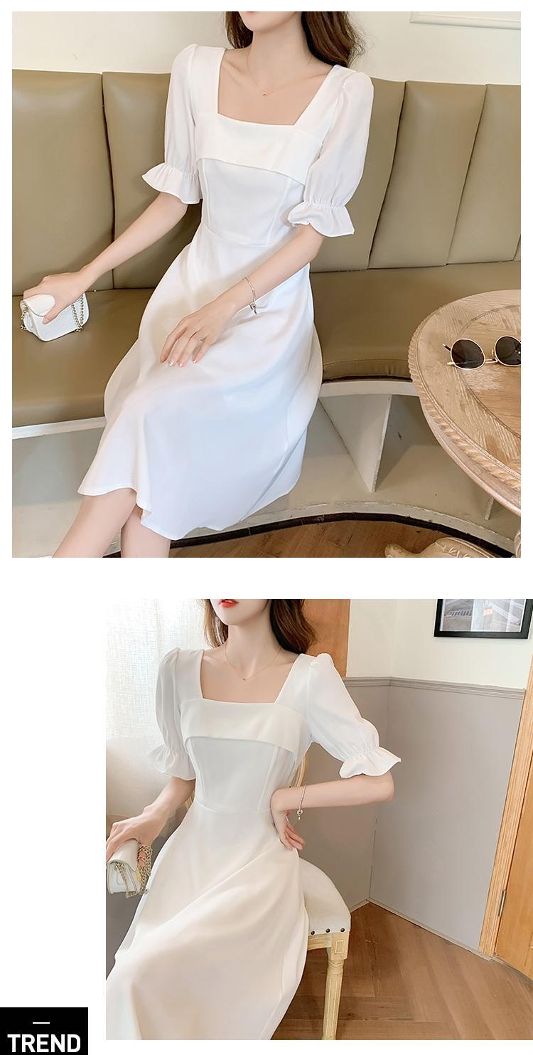 フランスのレトロな優しい風スクエアネックロングスカート女性の夏のウエストは細くて気質の女神ファンヘップバーンスタイルのドレス女性の夏 サマー 夏物 スクウェア yingd22307963340