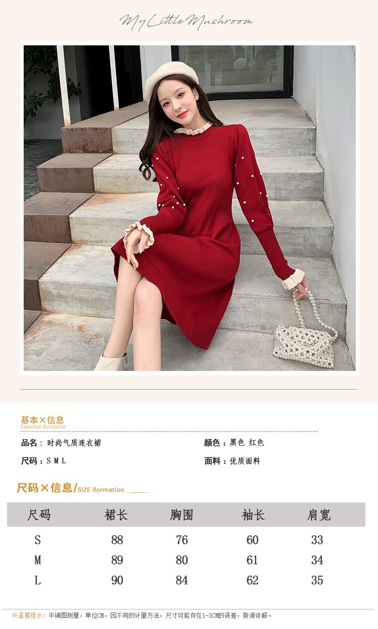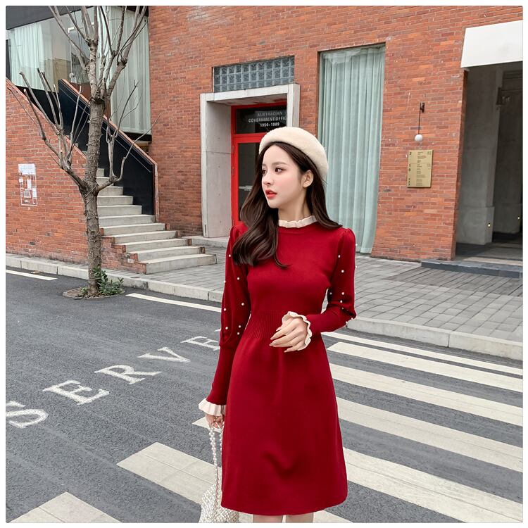 年の赤いニットのクリスマスドレスの女性の秋と冬の新しいスタイルのウエストスリミングレトロベースのセータースカートの女性 レッド オータム 秋物 ウィンター 冬物 yingd68602269197