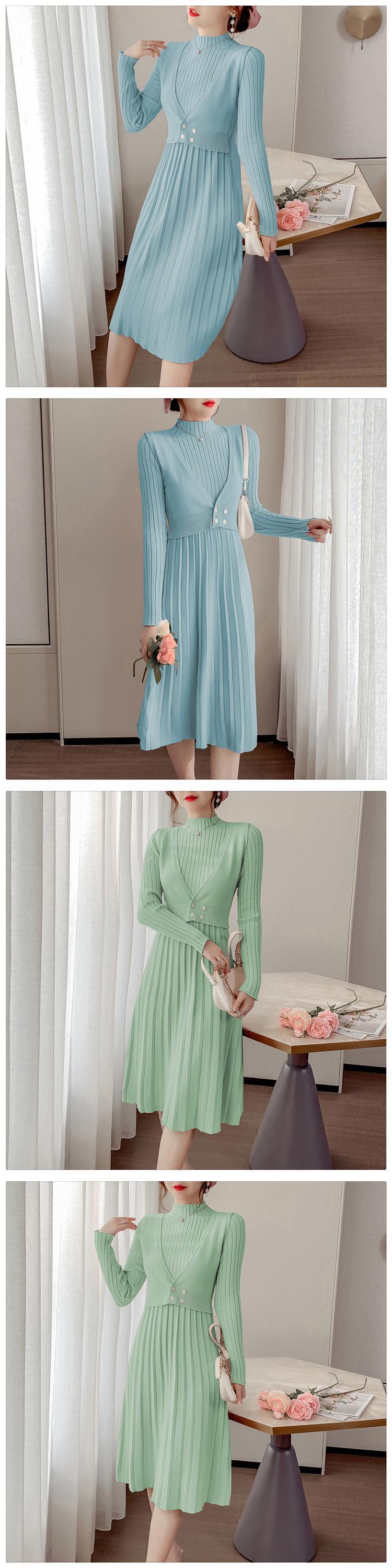 フランスのレトロなデザインのスカートライト成熟した風ミドル丈の偽のツーピーススリムプリーツニットドレス女性の秋と冬 オータム 秋物 ウィンター 冬物 yingd13926836576