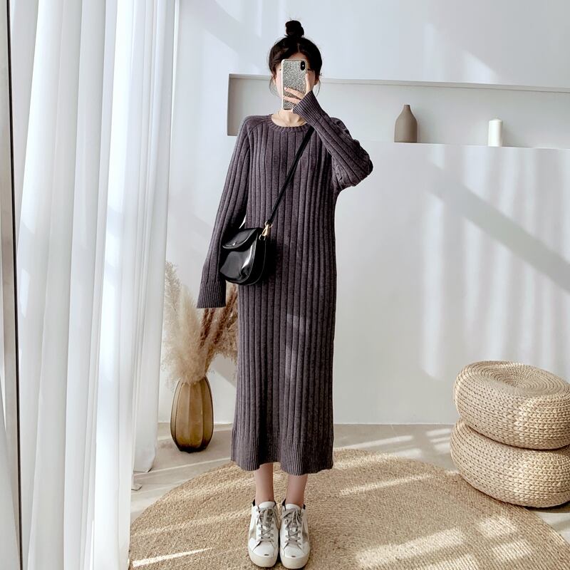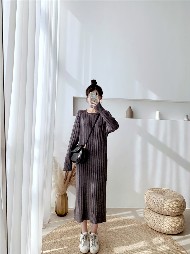 膝上にコートが付いたロングセータードレス、ルーズで薄い、厚手のニットドレス、女性の秋冬のベーススカート オータム 秋物 ウィンター 冬物 yingd33083321728