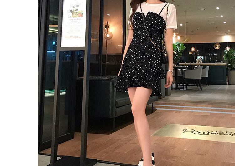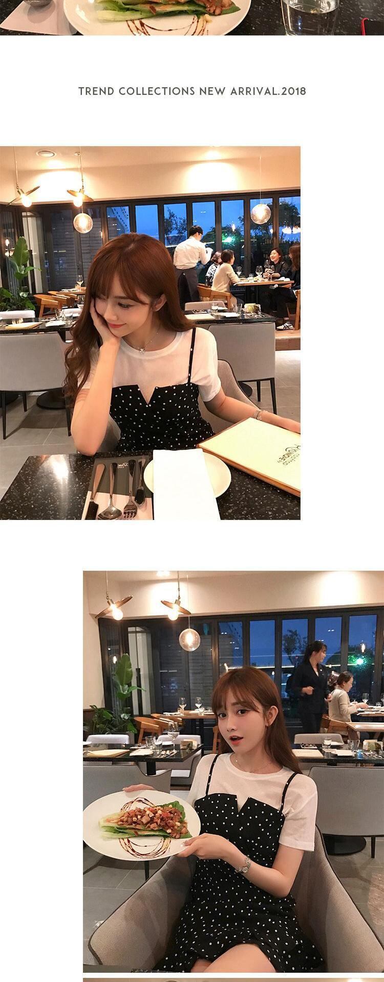 2020年夏の新作半袖Tシャツトップスレディース水玉サスペンダーワンピースツーピースファッションスーツスカート サマー 夏物 yingd69050162406