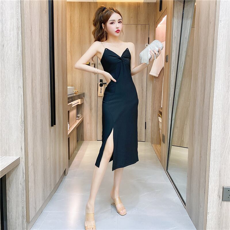 フランスのレトロシックな高品質のサスペンダースカートウエストは薄くセクシーなスプリットバッグヒップ高精細サスペンダードレス夏でした サマー 夏物 yingd66325049707