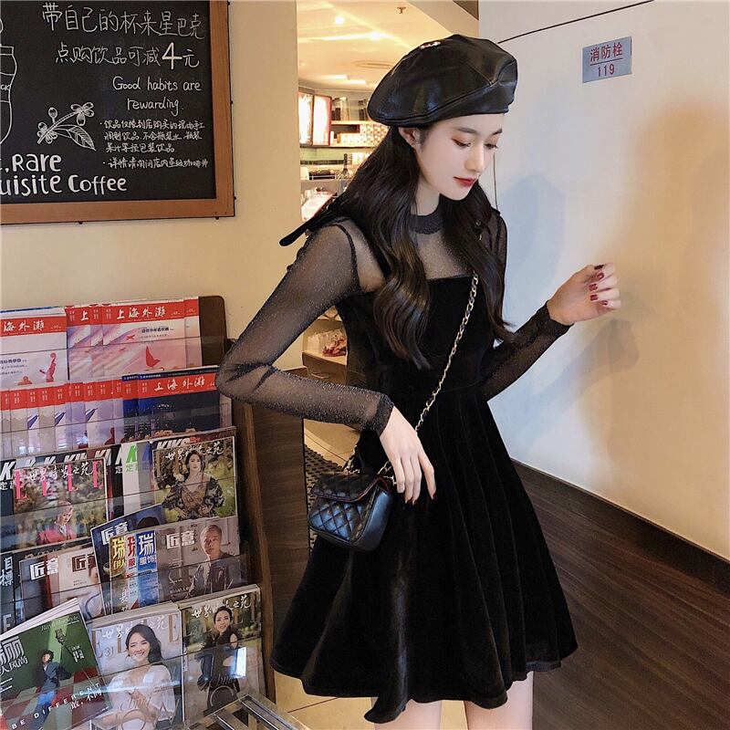 フランスのレトロなスリングドレス女性のツーピースドレス2020秋新しい慎重に機械ベルベットスリングスカートスーツ女性 オータム 秋物 yingd46858691758