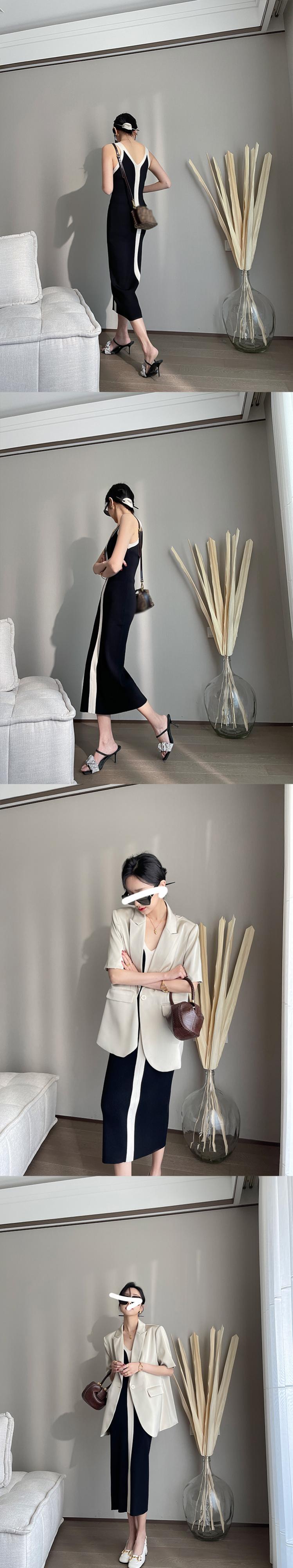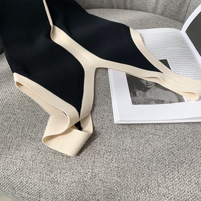 フランスのレトロなヘップバーンスタイルのスリングドレススリムで薄い気質のコントラストステッチニットスリングドレス女性の夏 サマー 夏物 yingd70333839261