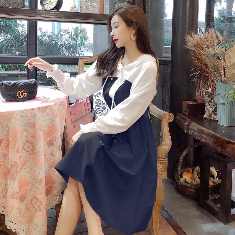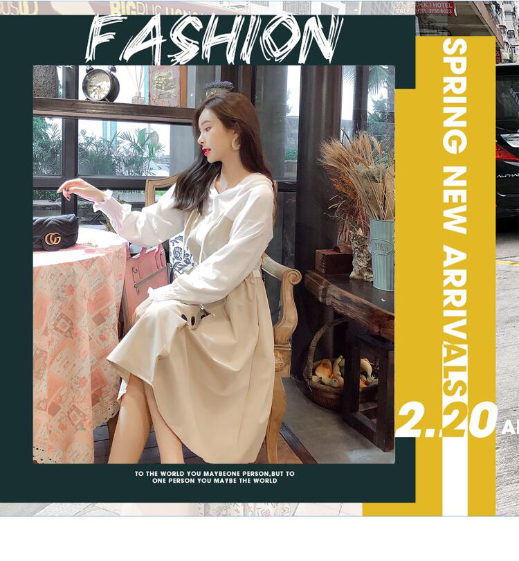 2020年初春新作ドレス女性フレンチレトロウエスタンスタイルスーパーフェアリーウエストスリミングフェイクツーピースフード付きセータードレス スプリング 春物 yingd26805400445