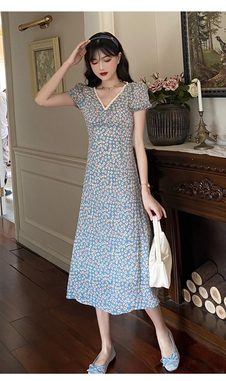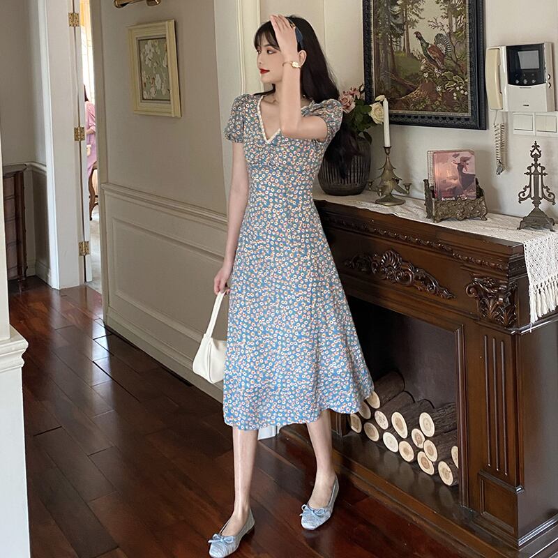フランスのplatycodon初恋妖精スーパー妖精センスタイル軽く調理された風腰痩身気質シフォン花柄ドレス女性夏 サマー 夏物 yingd39113018200
