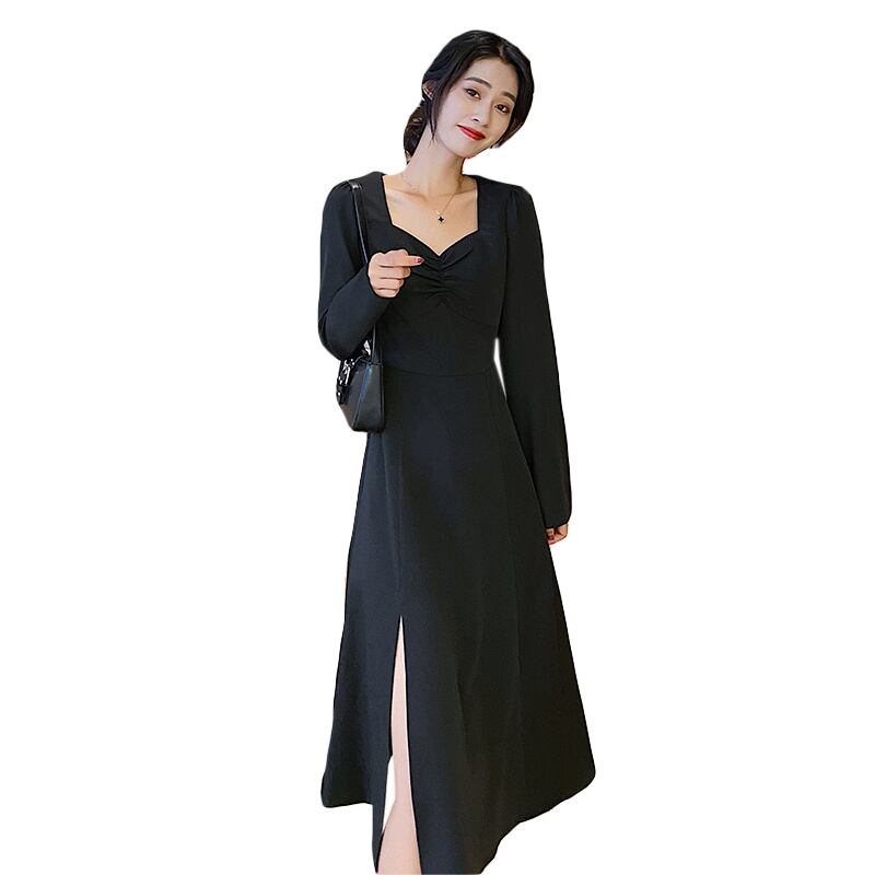 フランスのレトロなニッチティーブレイクスカート、フェミニン、ウエスト、薄くてセクシーなスプリットドレス、女性の秋と冬 オータム 秋物 ウィンター 冬物 yingd75537738299