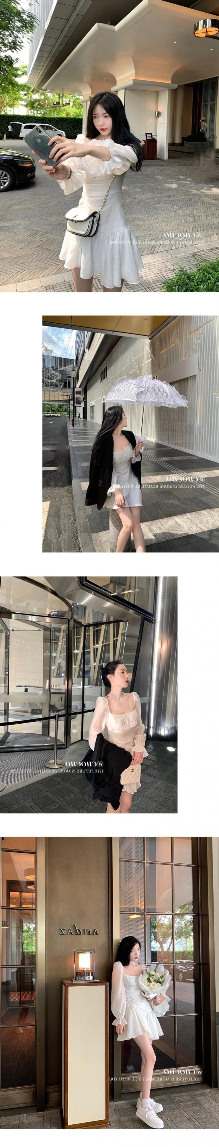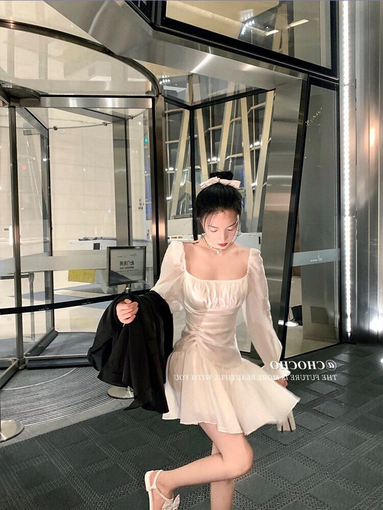 軽くて贅沢な女性のドレス2021年初秋新しいフレンチスタイルのニッチな優しいスタイルのシックなデザインのハイエンドのスクエアカラーのドレスの女性 オータム 秋物 スクウェア yingd16330814300