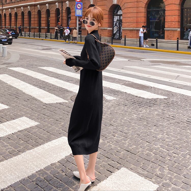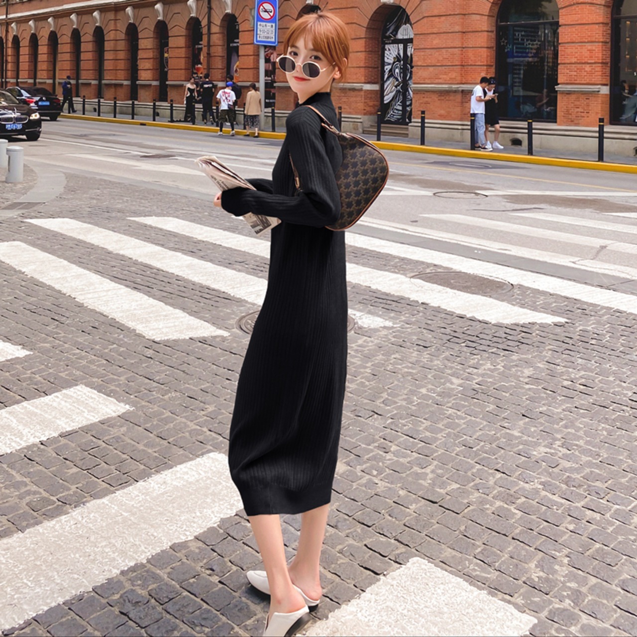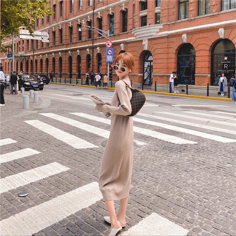 コートロングスカートフレンチレトロ優しい怠惰な風ニットドレス女性秋冬ミドル丈オーバーザニーセータースカート オータム 秋物 ウィンター 冬物 yingd1604006936