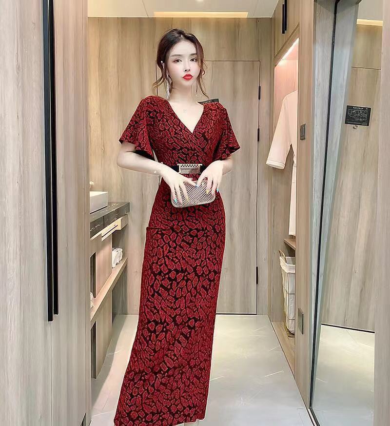 フランスのレトロなロイヤルシスターライトマチュアスタイルセクシーなロングスカートハイエンドセンスのライトラグジュアリーレディース自家栽培スプリットドレス女性夏 サマー 夏物 yingd85156809766