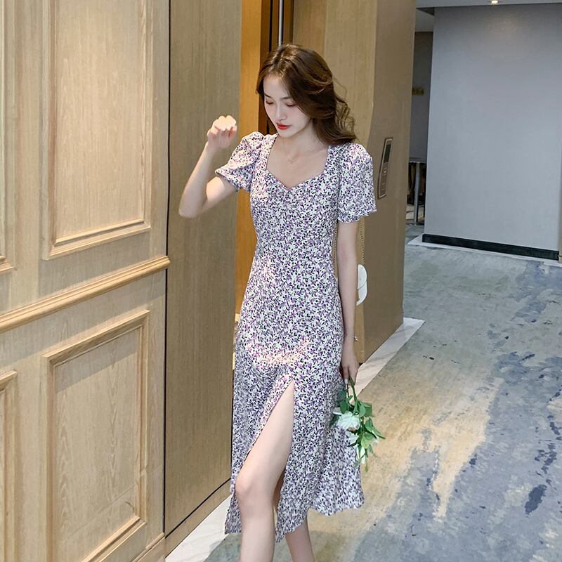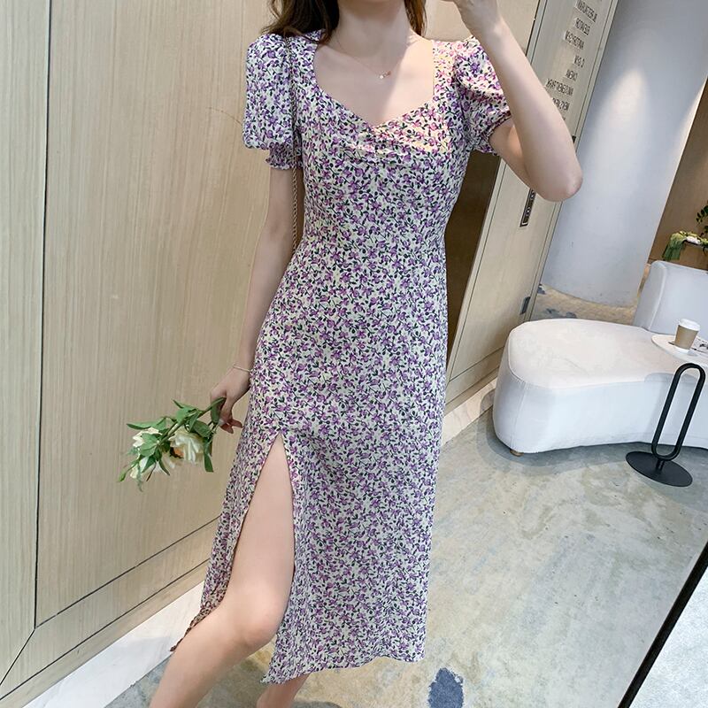フランスの優しいスタイルのティーブレイク初恋ロングドレスシックな高品質ウエストパフスリーブ花柄ドレス女性の夏の妖精 サマー 夏物 yingd25192076837