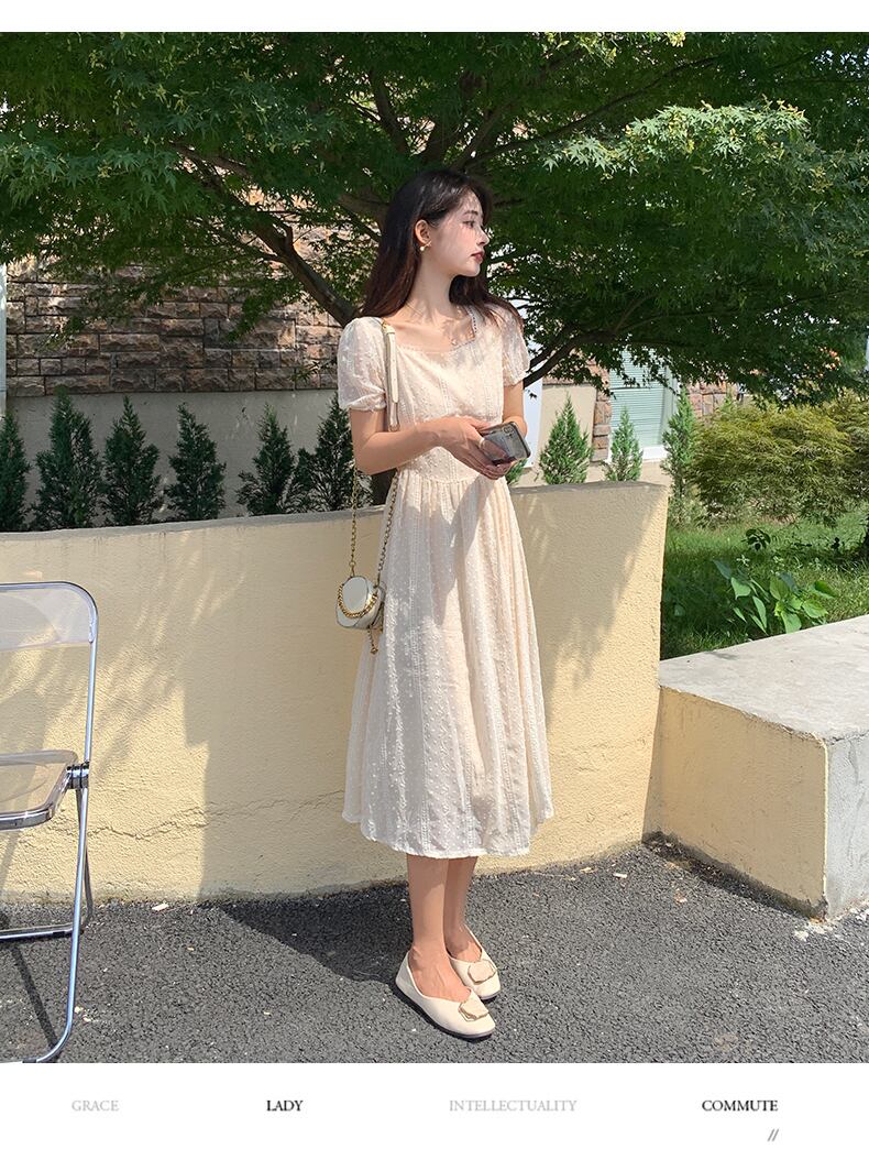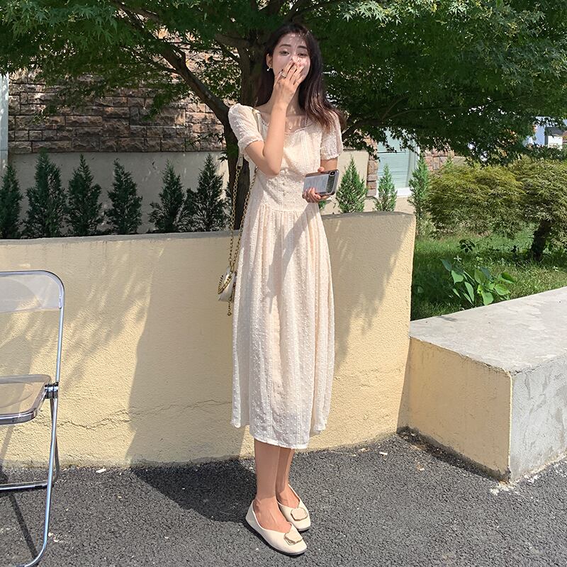 フレンチティーブレイク初恋ドレスレトロ優しいスタイルデザイン高精細スクエアカラーシフォン妖精ドレス女性夏薄 サマー 夏物 スクウェア yingd30559214306