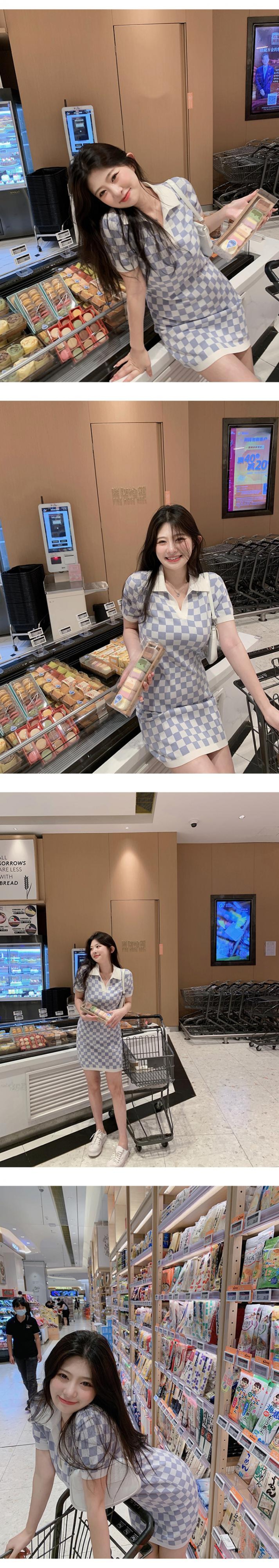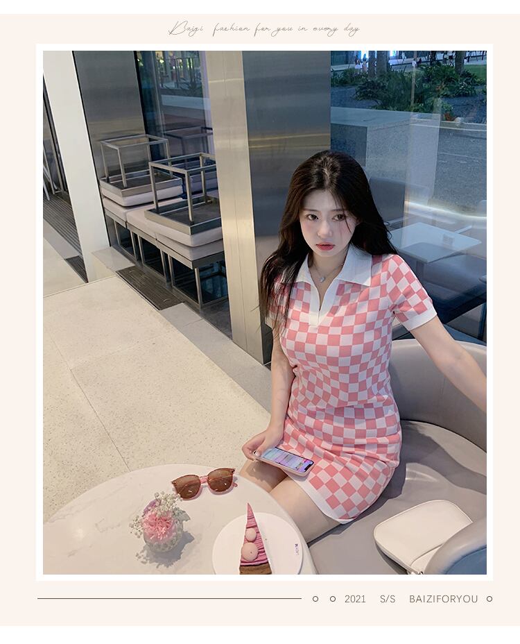 フランスのレトロな穏やかな風のキキョウティーブレイクドレスは塩が甘いことができます、自己栽培は薄い気質のニットチェック柄のドレス夏です 大人ガーリー スウィート キュート カジュアル サマー 夏物 yingd61918647883