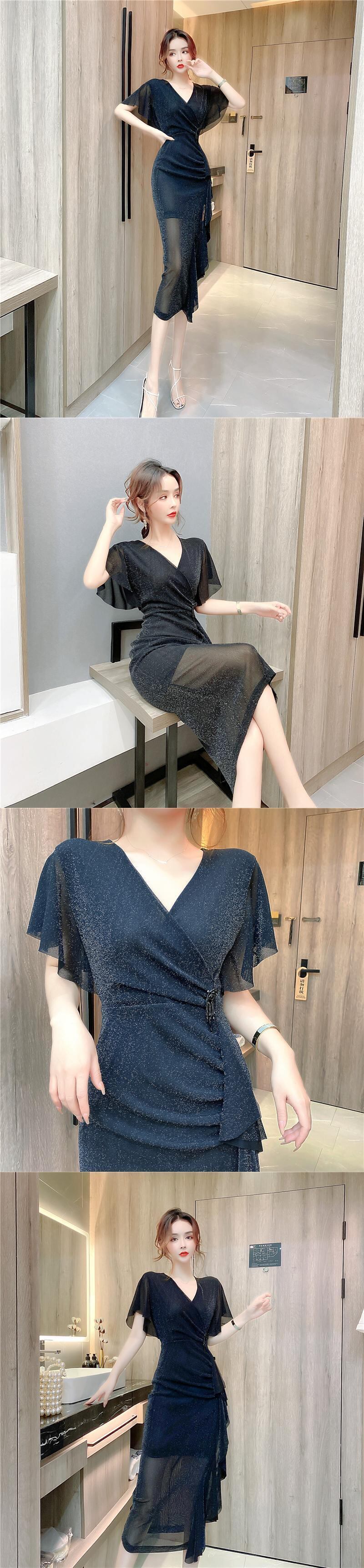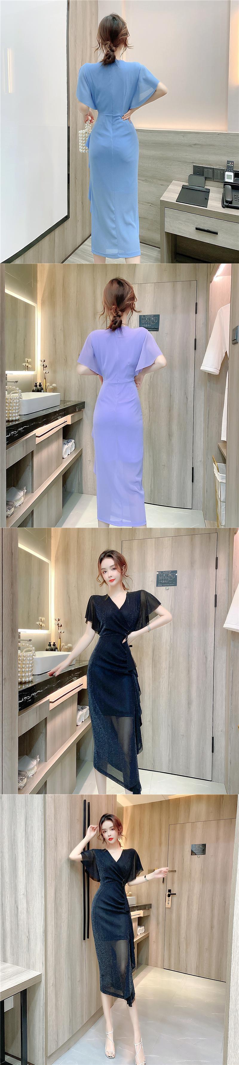 フランスのレトロな気質フェミニンでセクシーなロングスカートのウエストは細く、高精細で軽い高級Vネックの妖精のドレスの薄いセクション yingd9448683025